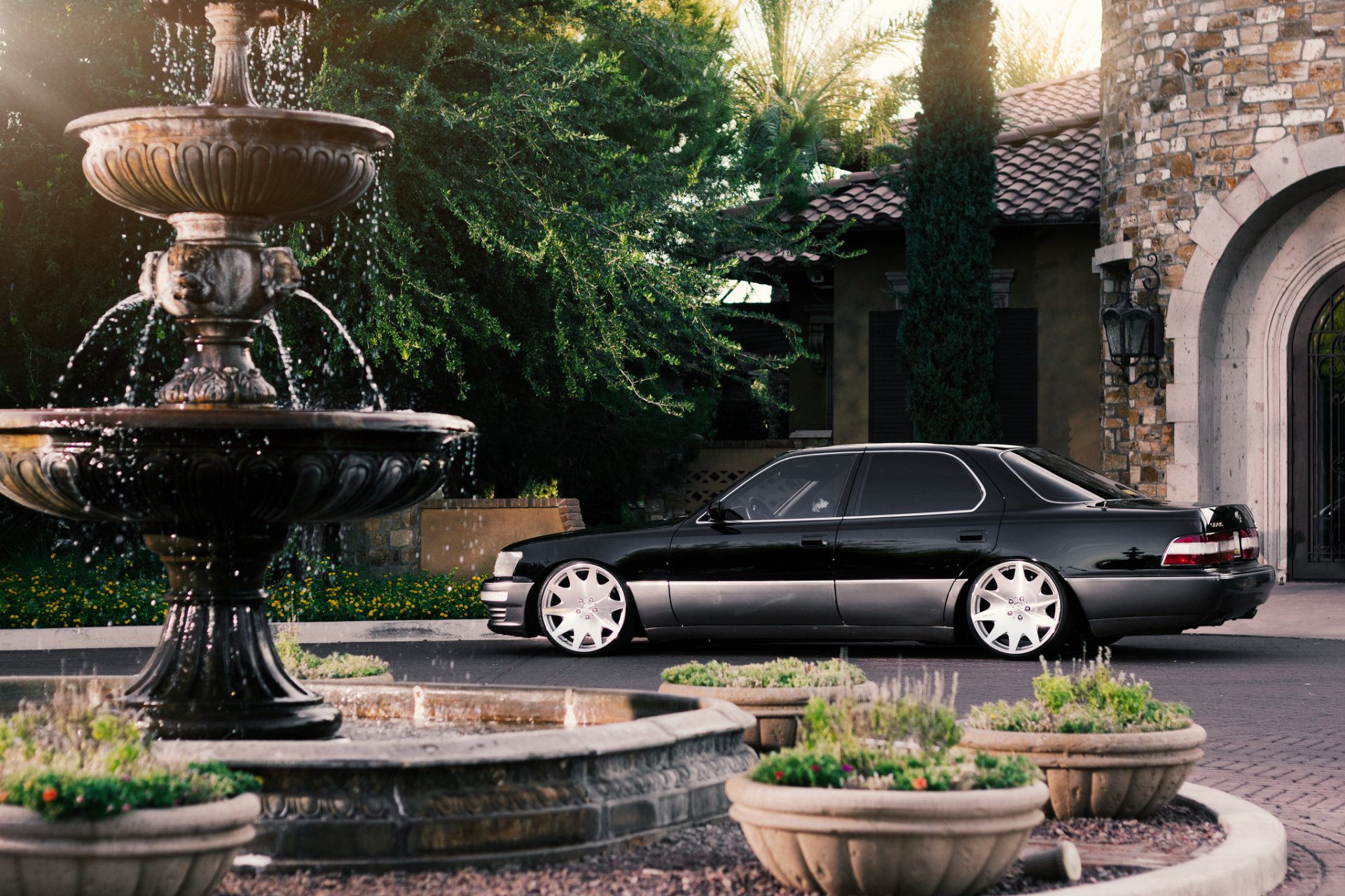 Schwarzes Auto mit schönen Scheiben auf schwarzem Hintergrund