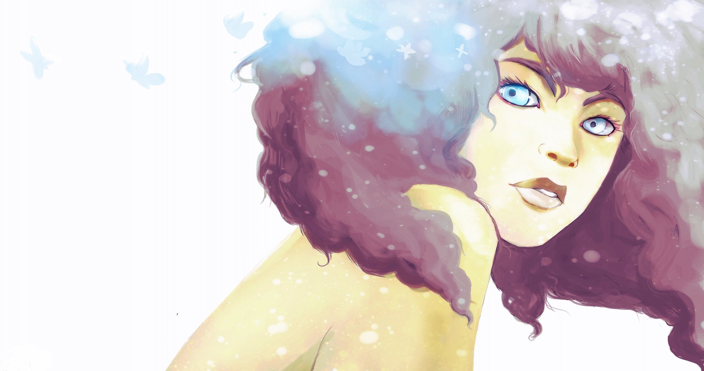 Das gesicht eines mädchens mit blauen augen und welligem haarDas Gesicht eines Mädchens mit blauen Augen und welligem Haar