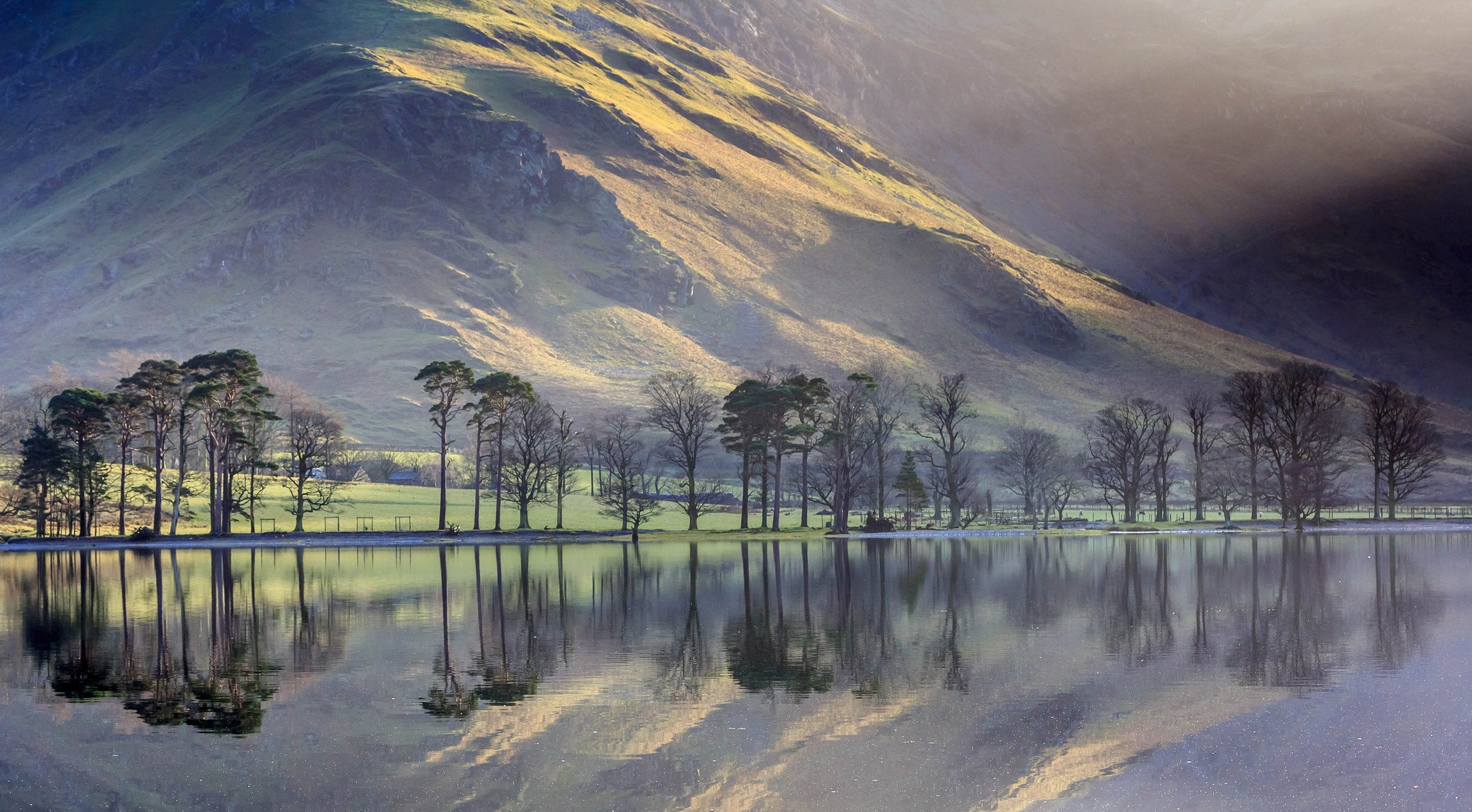 Einsame Bäume am See in den Bergen
