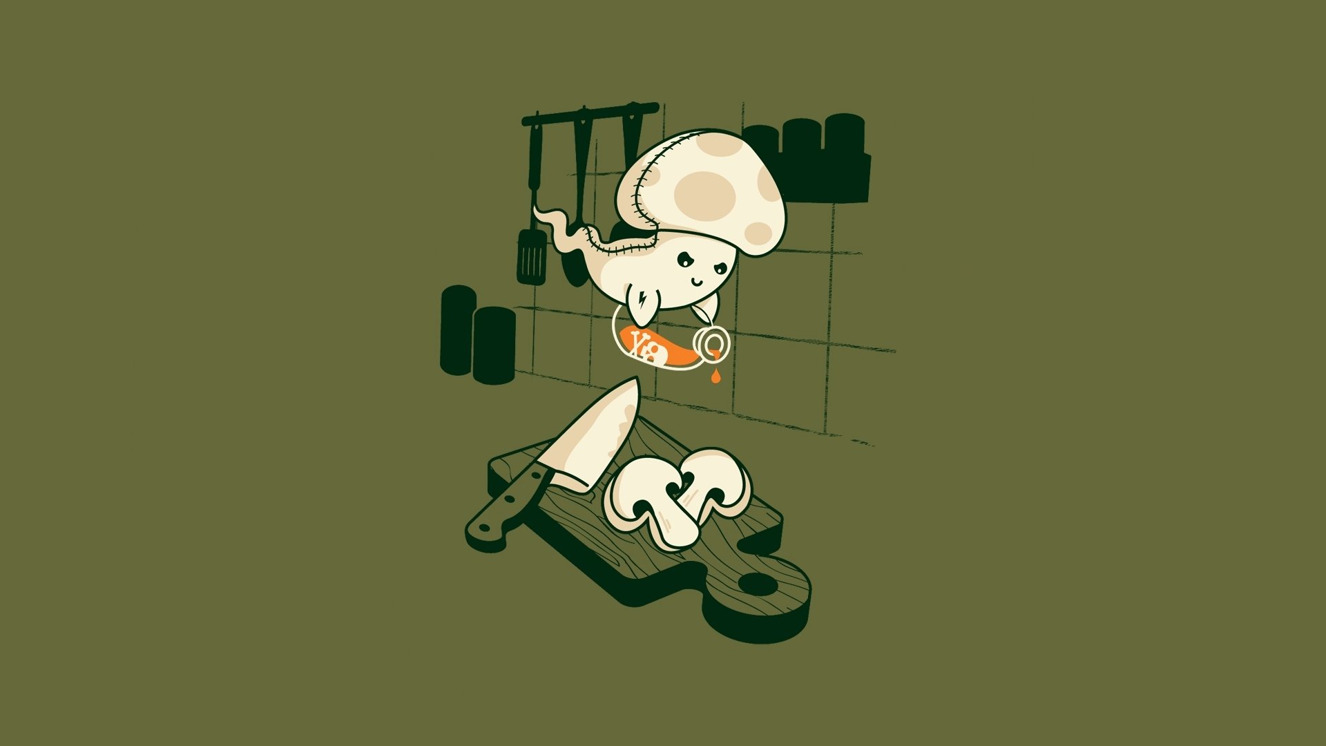 In der küche fliegt der geist eines geschnittenen pilzes über das brettIn der Küche fliegt der Geist eines geschnittenen Pilzes über das Brett
