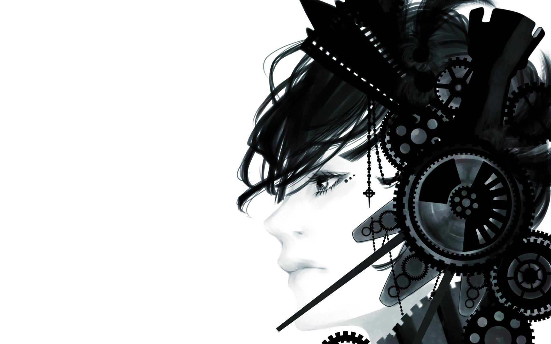 Einfarbiges bild eines mannes mit mechanismen im haarEinfarbiges Bild eines Mannes mit Mechanismen im Haar