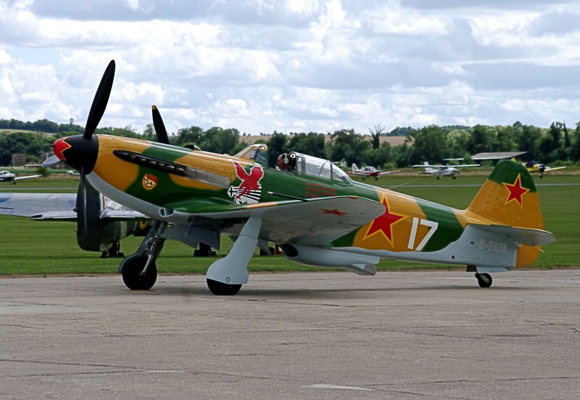 Sowjetisches Lehr- und Ausbildungsflugzeug YAK-50 im Flug