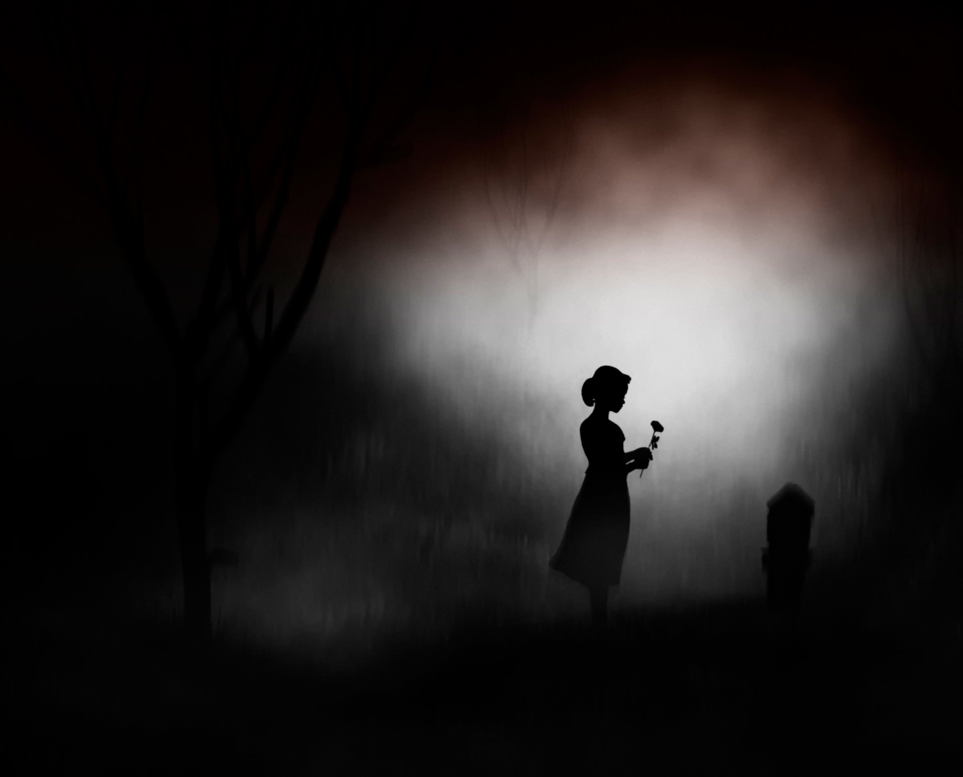 Nacht silhouette, wo ein mädchen über einem grabstein stehtNacht Silhouette, wo ein Mädchen über einem Grabstein steht