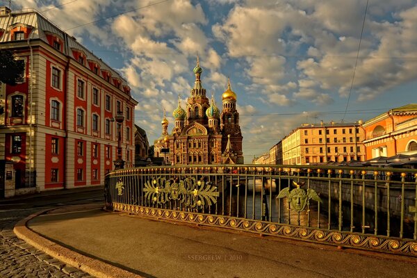 Die Brücke in der Stadt St. Petersburg. Alte Häuser und Gebäude auf den Straßen