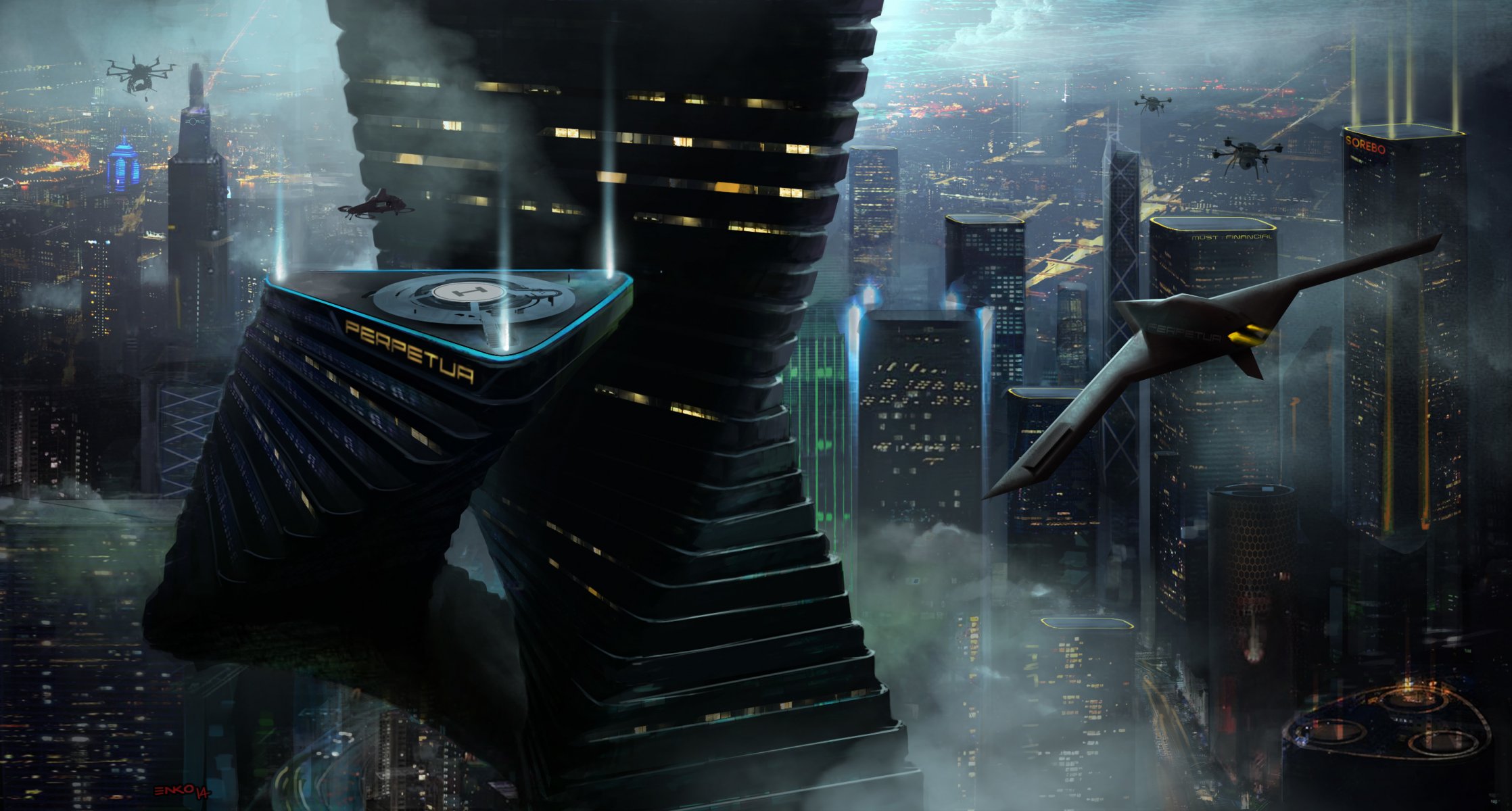 Weißer und orangefarbener Lamborghini vor dem Hintergrund der Lichter der Nachtstadt Moskau