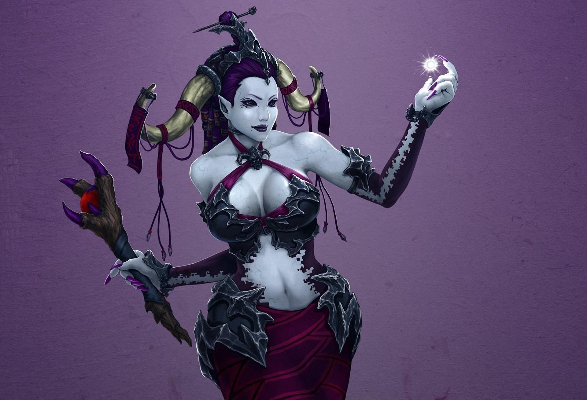Eine mythische frau mit hörnern hält ein magisches licht in der handEine mythische Frau mit Hörnern hält ein magisches Licht in der Hand