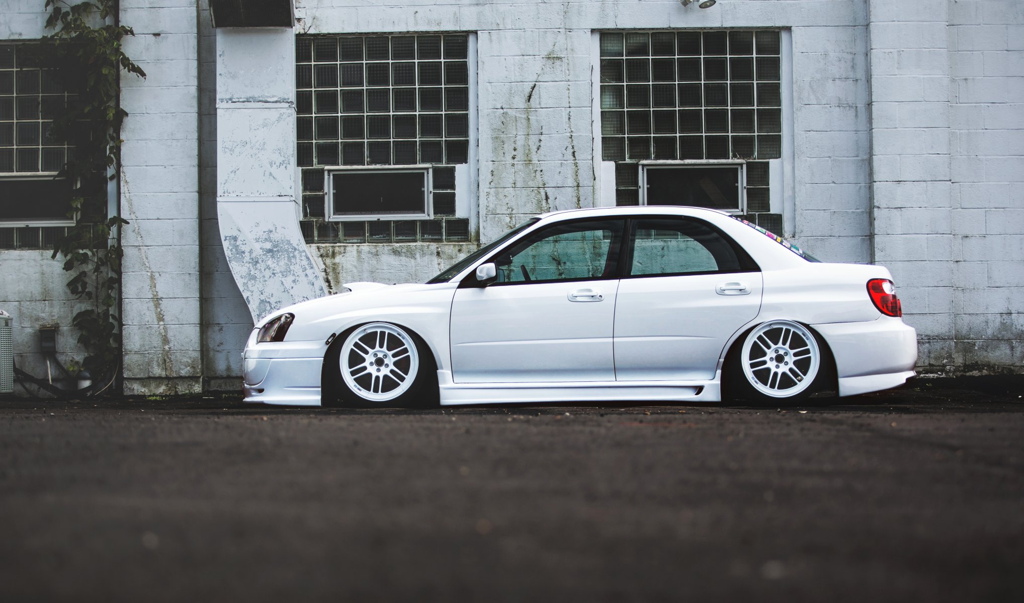 Grauer subaru impreza in bewegung auf nasser streckeGrauer Subaru Impreza in Bewegung auf nasser Strecke