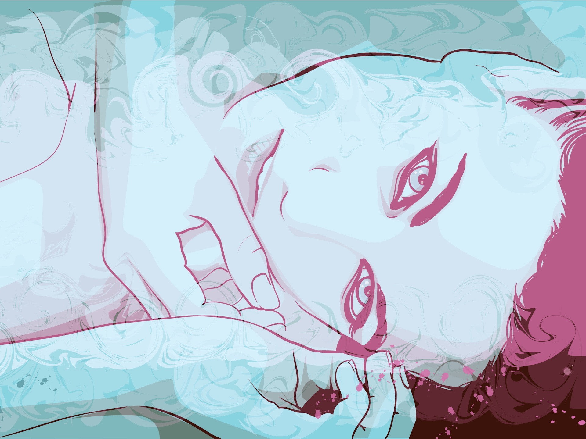 Blondes mädchen posiert und beißt sexy ihre finger mit schwämmenBlondes Mädchen posiert und beißt sexy Ihre Finger mit Schwämmen