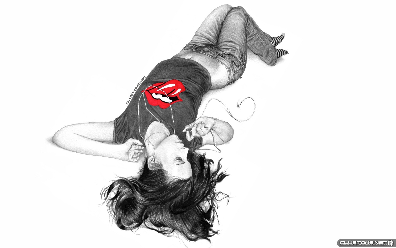 Gezeichnetes mädchen mit kopfhörern auf weißem hintergrundGezeichnetes Mädchen mit Kopfhörern auf weißem Hintergrund