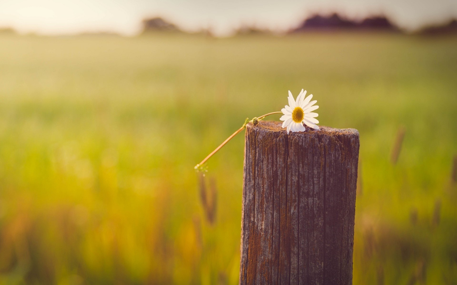 Kamille, die auf einem pfosten im feld gelassen wurdeKamille, die auf einem Pfosten im Feld gelassen wurde