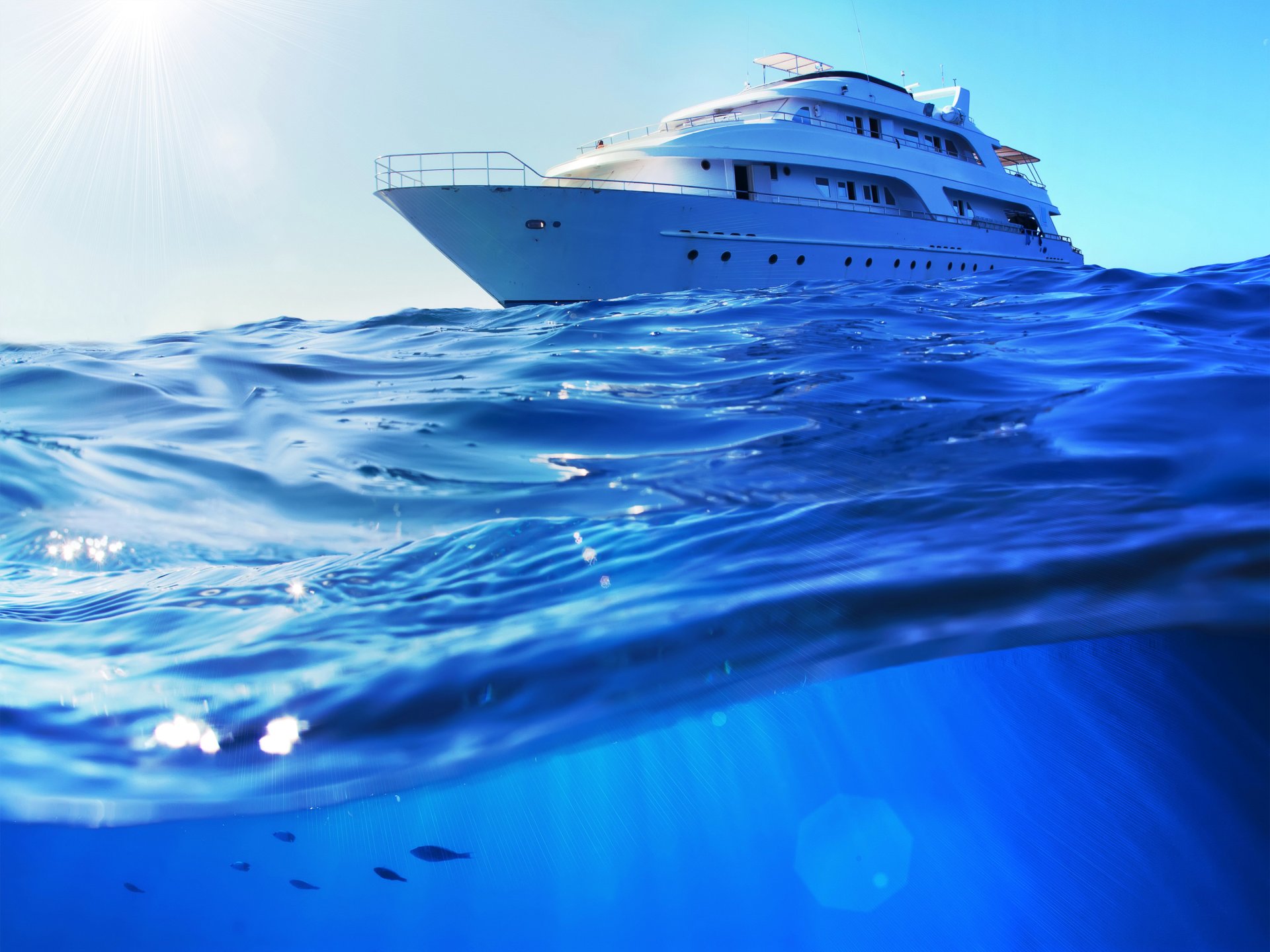 Unglaubliche landschaft im meer yacht bei sonnenuntergangUnglaubliche Landschaft im Meer Yacht bei Sonnenuntergang