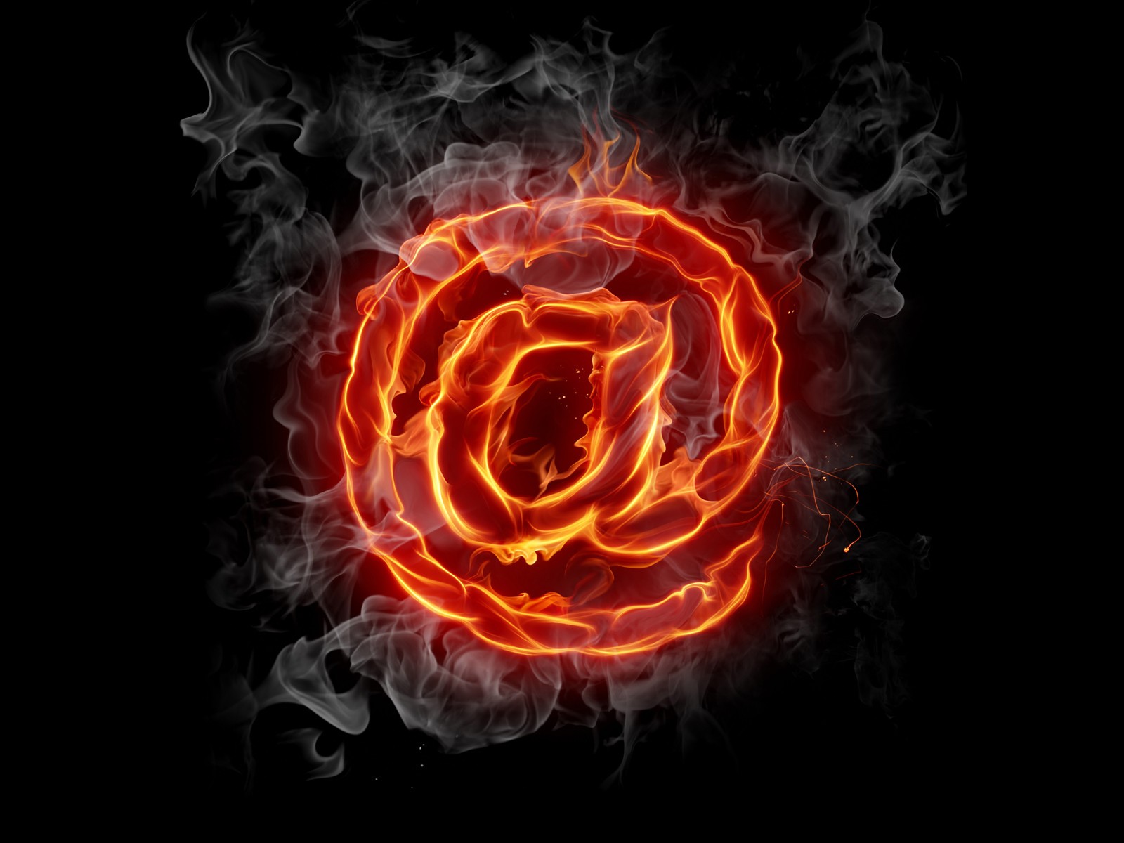 Feuriges rauchendes @ -symbol auf schwarzem hintergrundFeuriges rauchendes @ -Symbol auf schwarzem Hintergrund