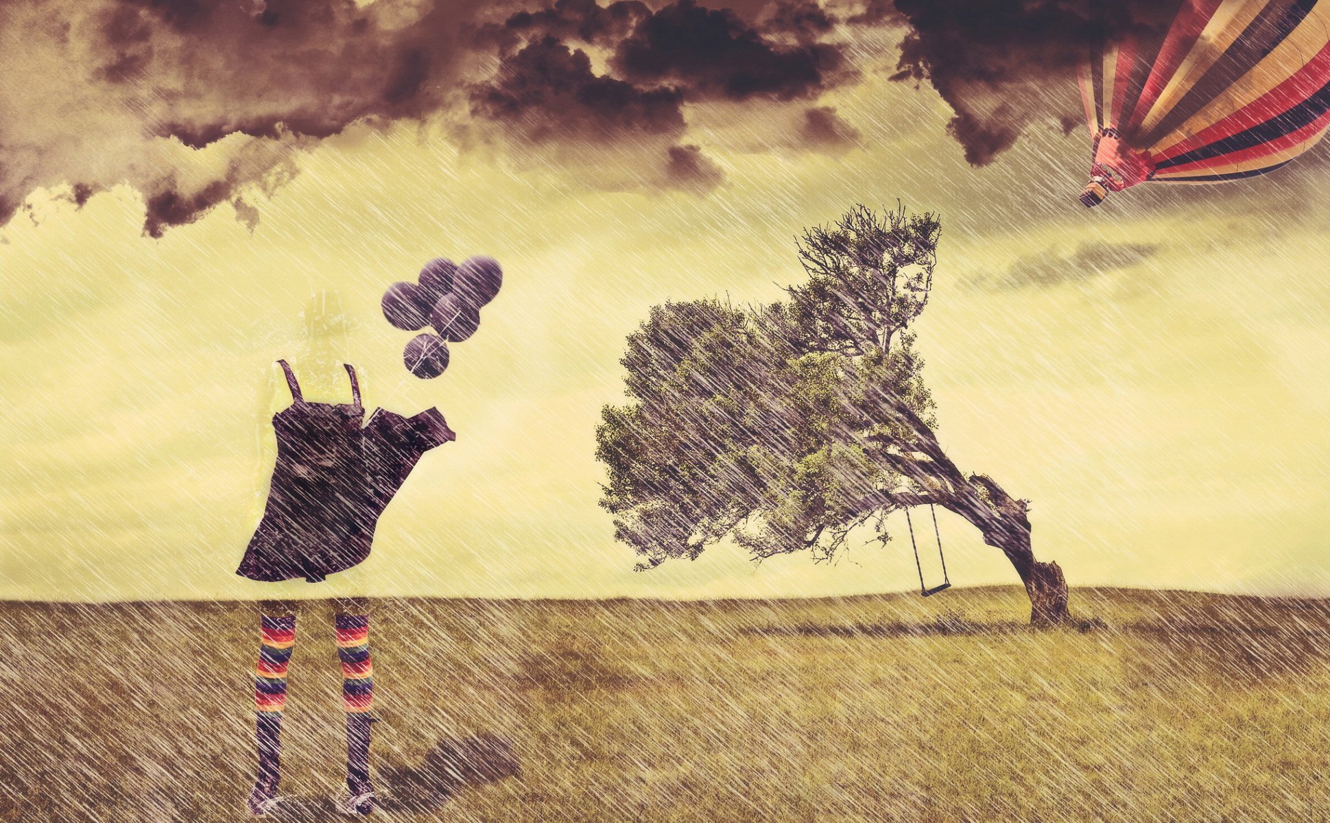 Eine unsichtbare figur steht neben einem baum mit einer schaukelEine unsichtbare Figur steht neben einem Baum mit einer Schaukel
