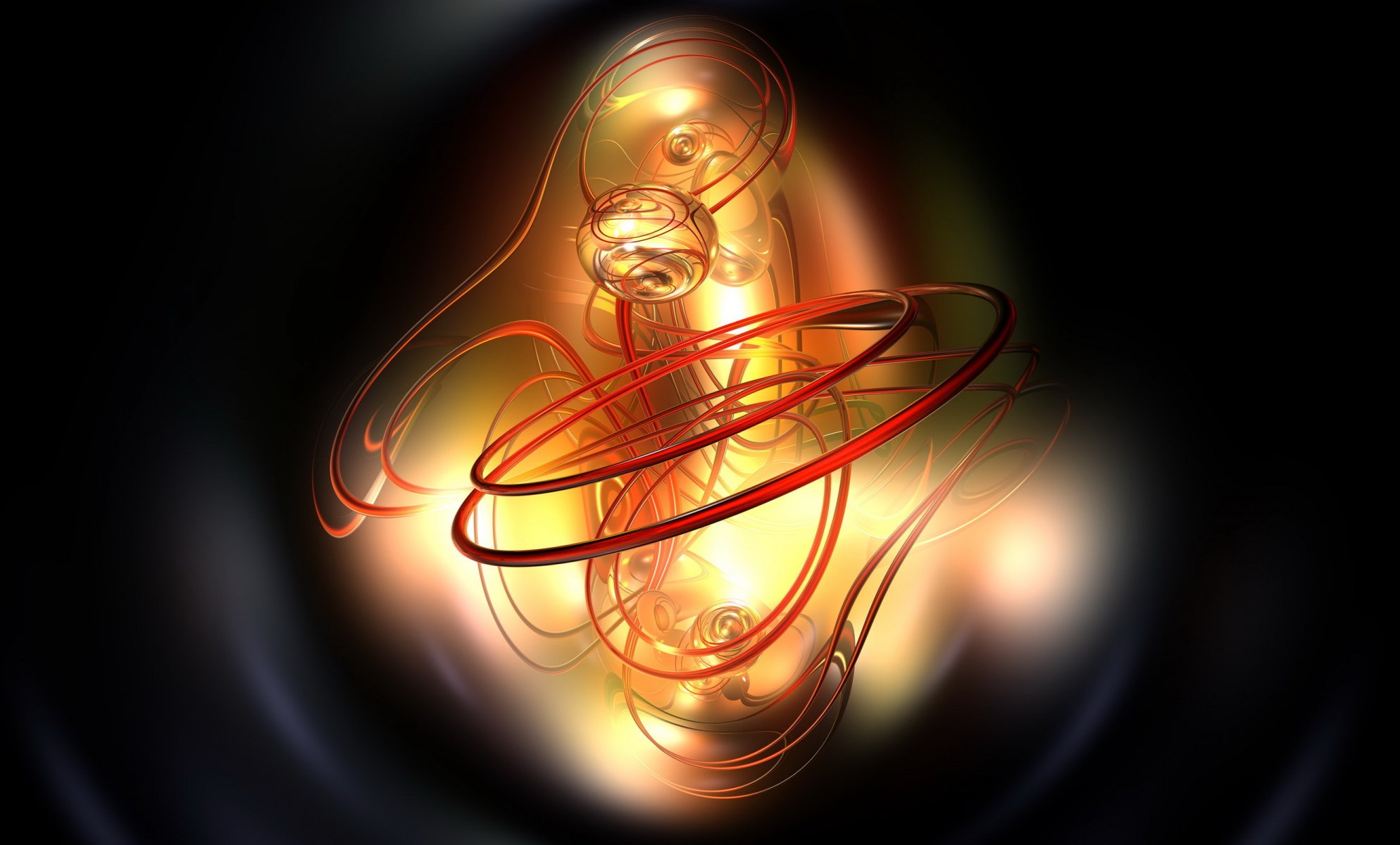 3d-Bild von roten Linien und einer brennenden Kugel auf dunklem Hintergrund