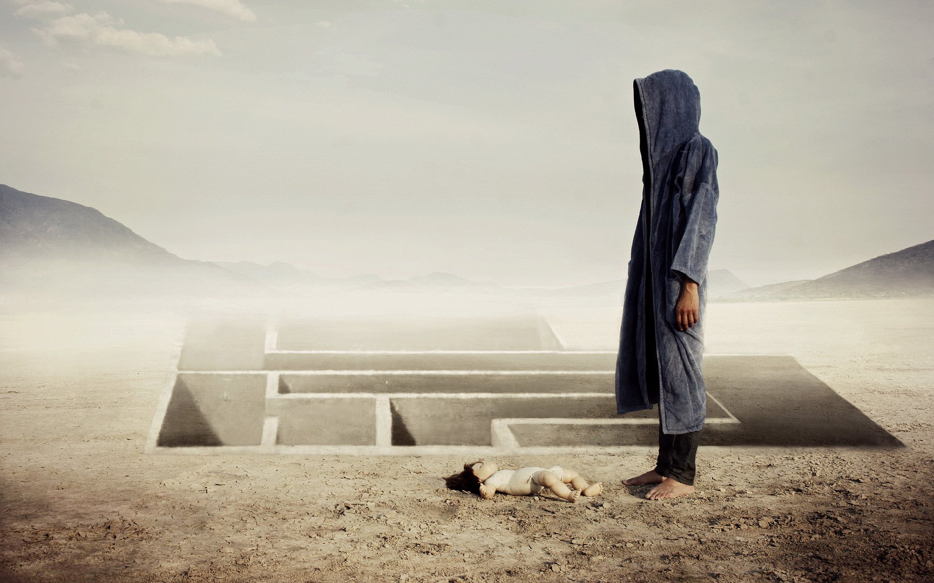 Eine person in einer schwierigen situation kann das labyrinth nicht bewältigenEine Person in einer schwierigen Situation kann das Labyrinth nicht bewältigen