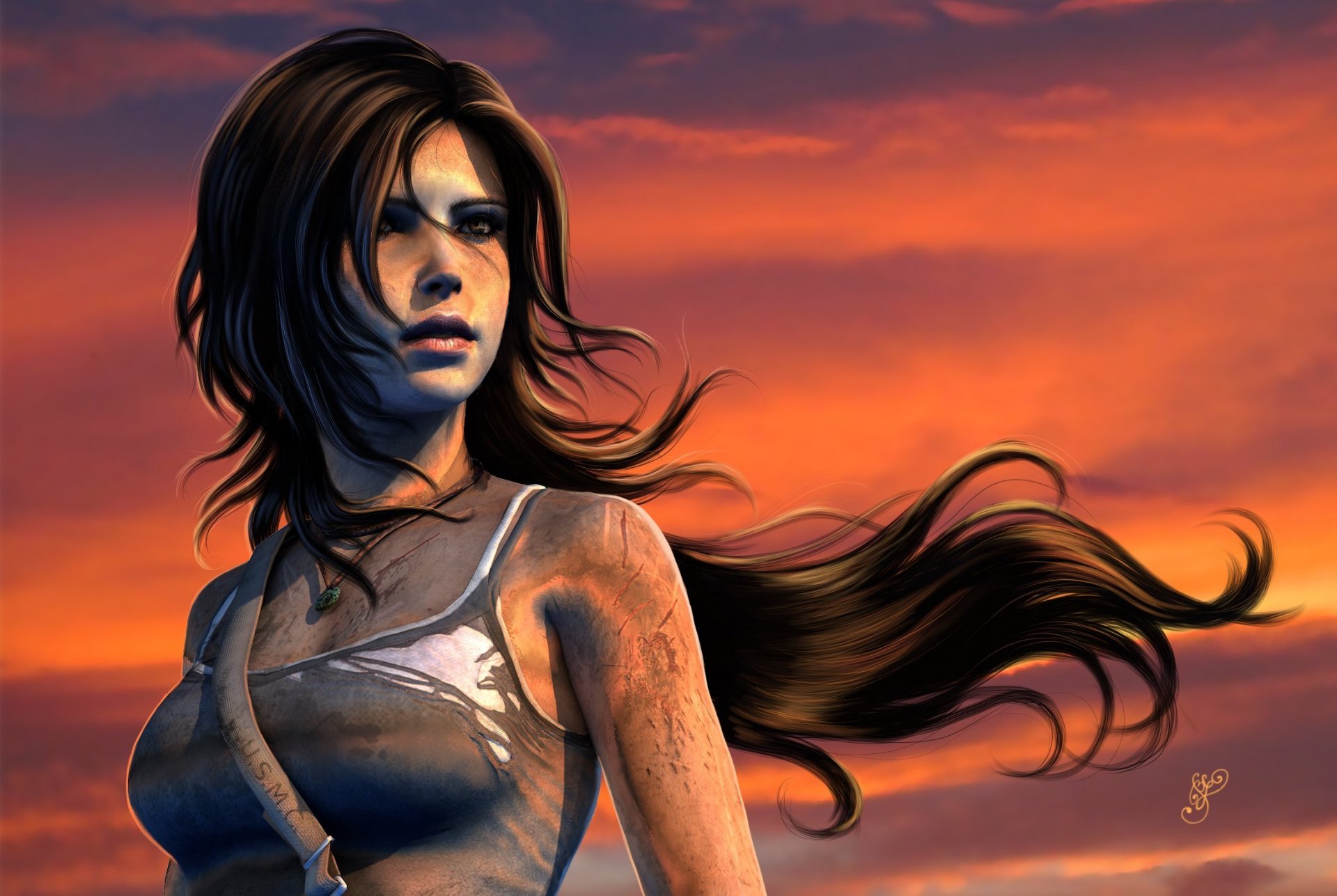 Mädchen-Krieger und blutiger Sonnenuntergang