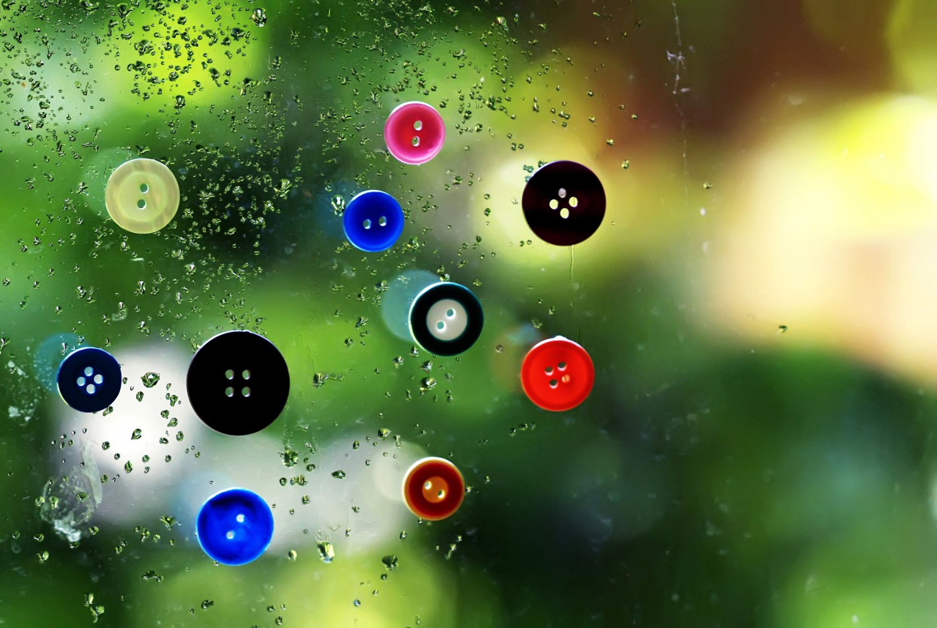 Farbige knöpfe auf einem hintergrund von regentropfenFarbige Knöpfe auf einem Hintergrund von Regentropfen