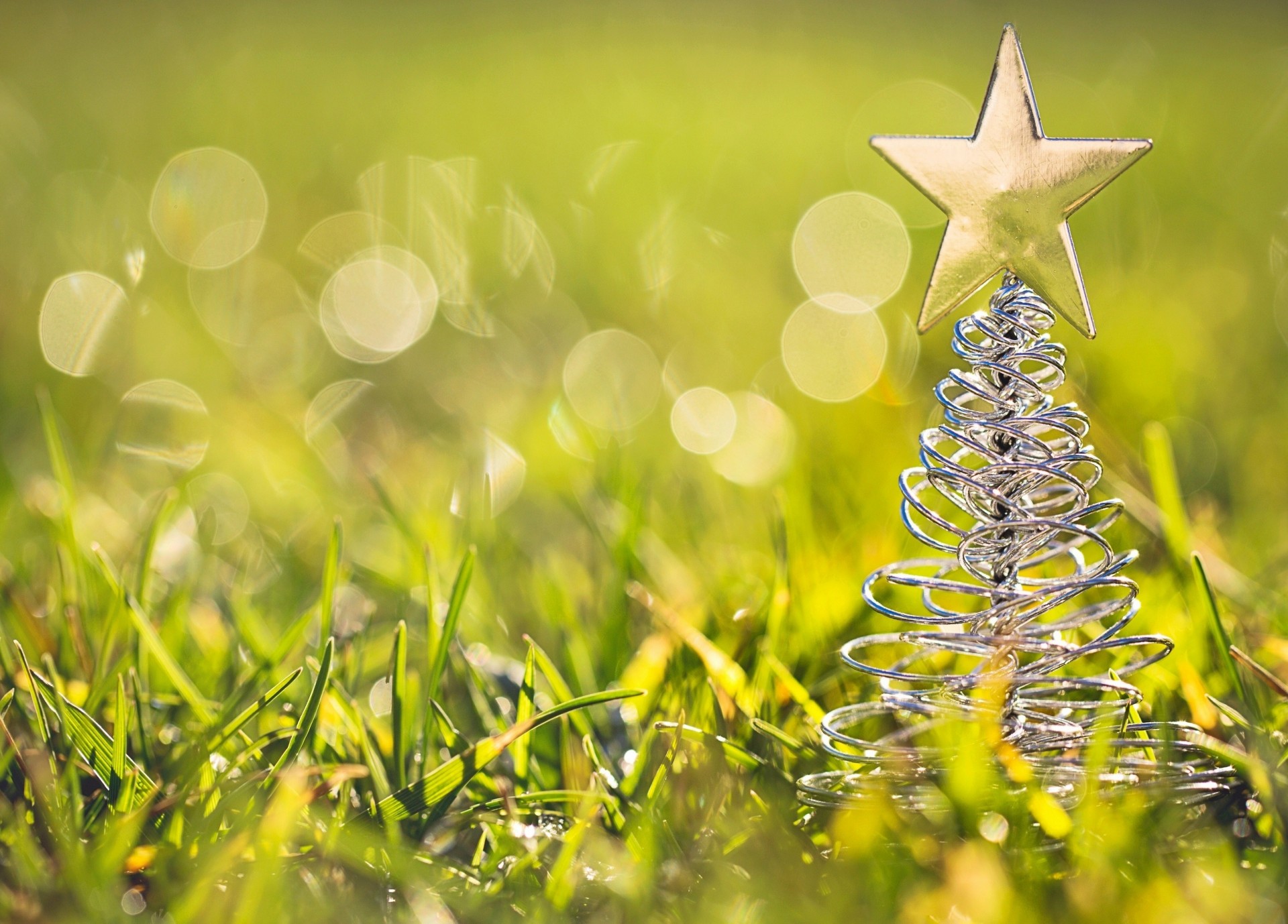 Kleiner Weihnachtsbaum aus Draht im grünen Gras