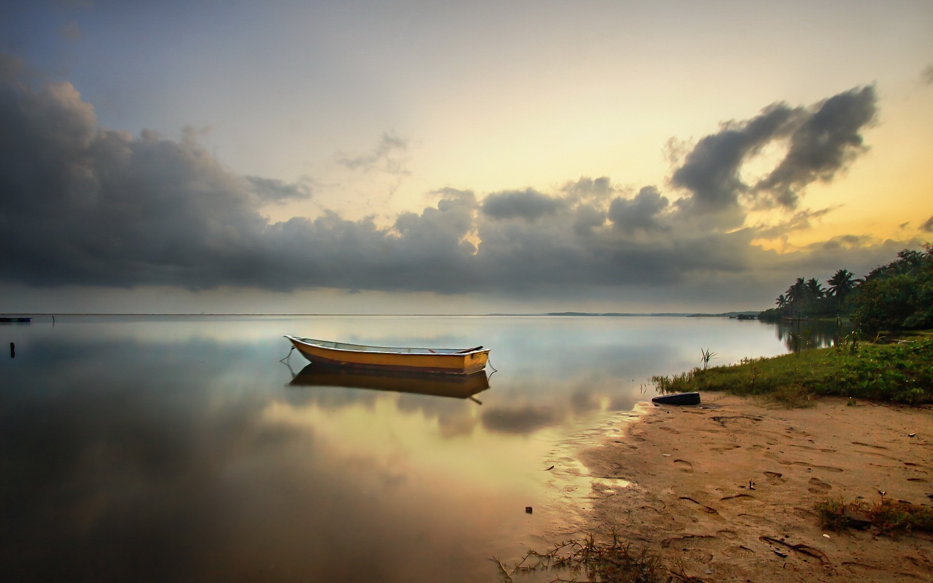 Das boot ist mit bunten girlanden für romantik verziertDas Boot ist mit bunten Girlanden für Romantik verziert