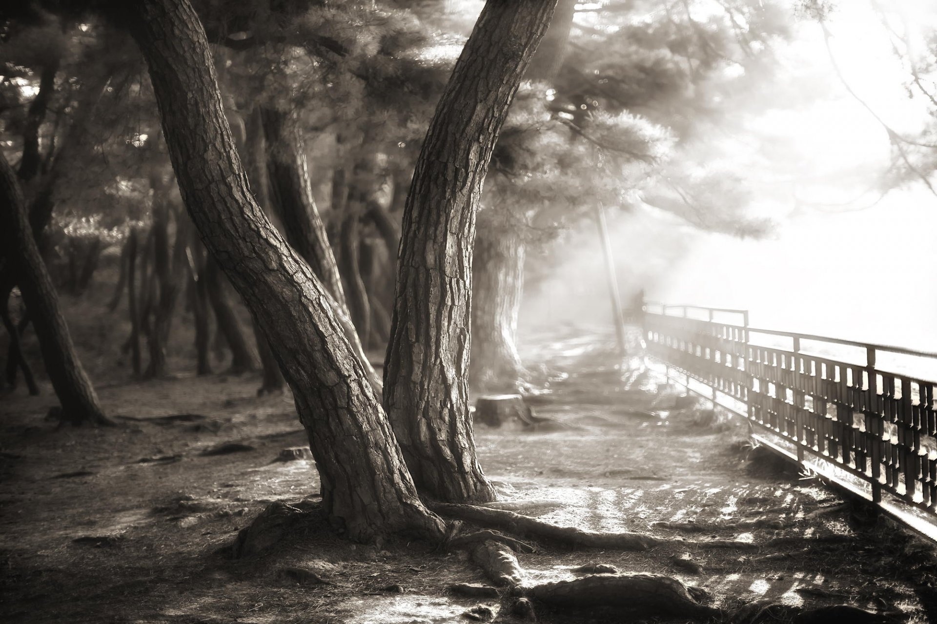 Ein Bild des Waldes mit einem Teich und einem Reh am Ufer
