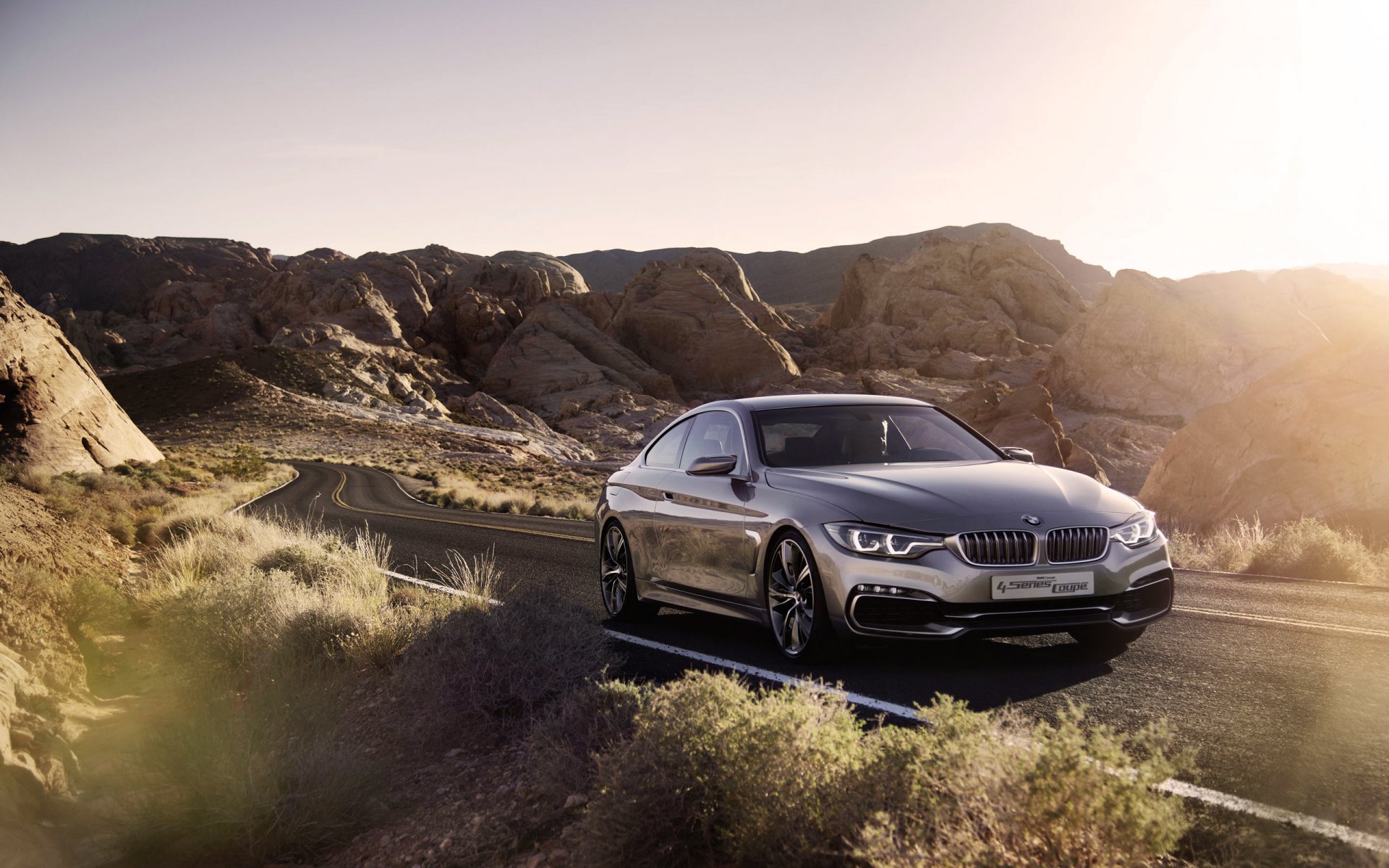 Ein cooles auto der marke bmw, das auf einer verlassenen straße rastEin cooles Auto der Marke BMW, das auf einer verlassenen Straße rast