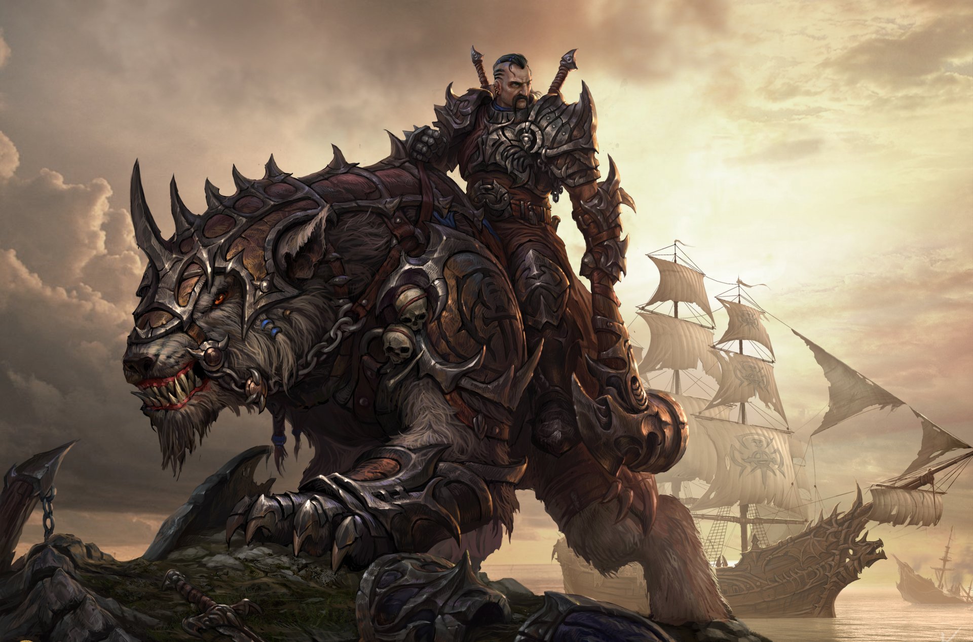 Ein magier im roten mantel mit einer riesigen ameiseEin Magier im roten Mantel mit einer riesigen Ameise