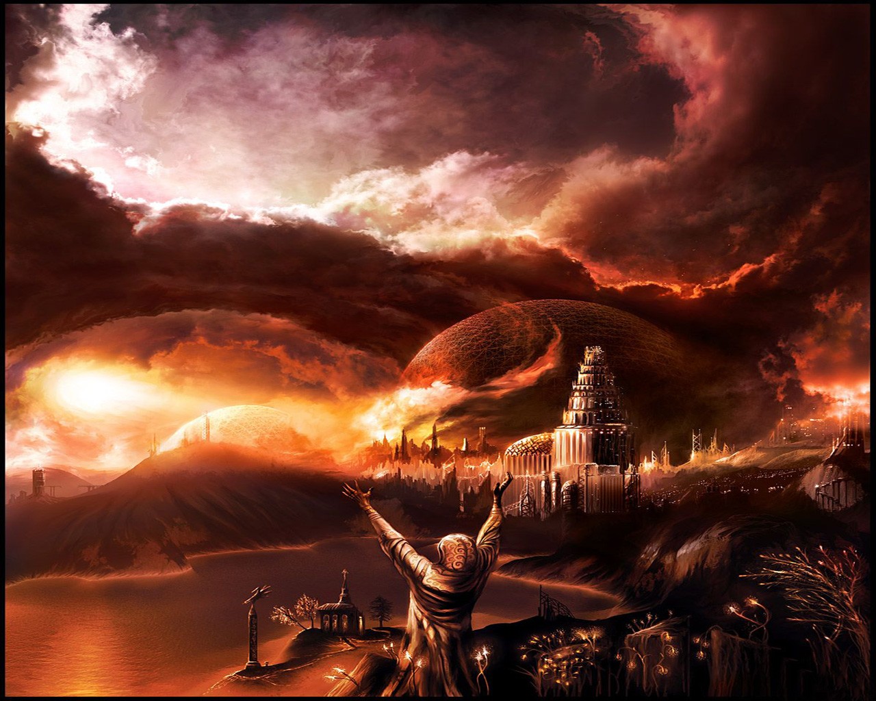 Die sitmpank-landschaft der zerstörten ruinen der stadtDie Sitmpank-Landschaft der zerstörten Ruinen der Stadt