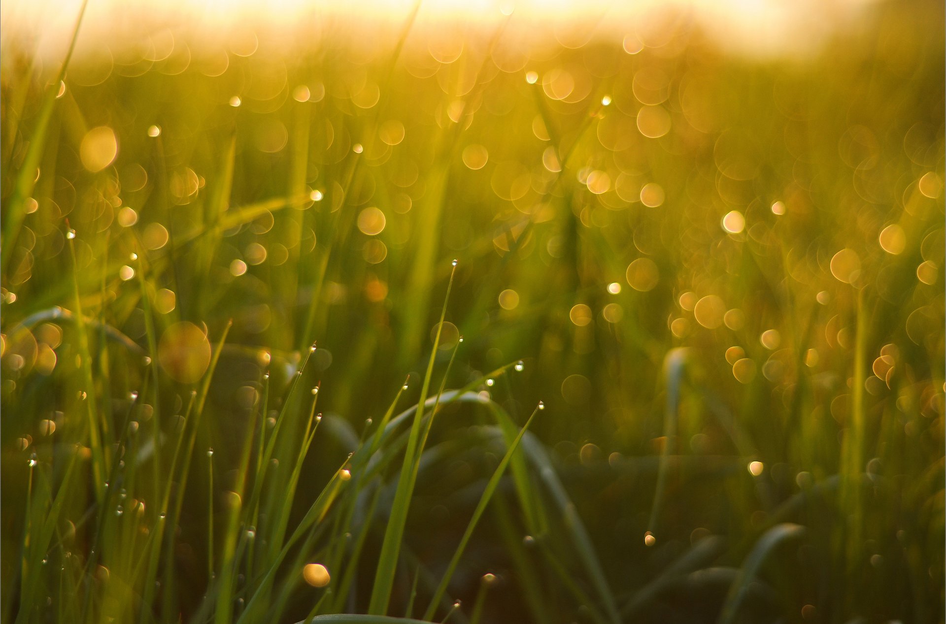 Nahaufnahme von Gras und Regentropfen auf Glas