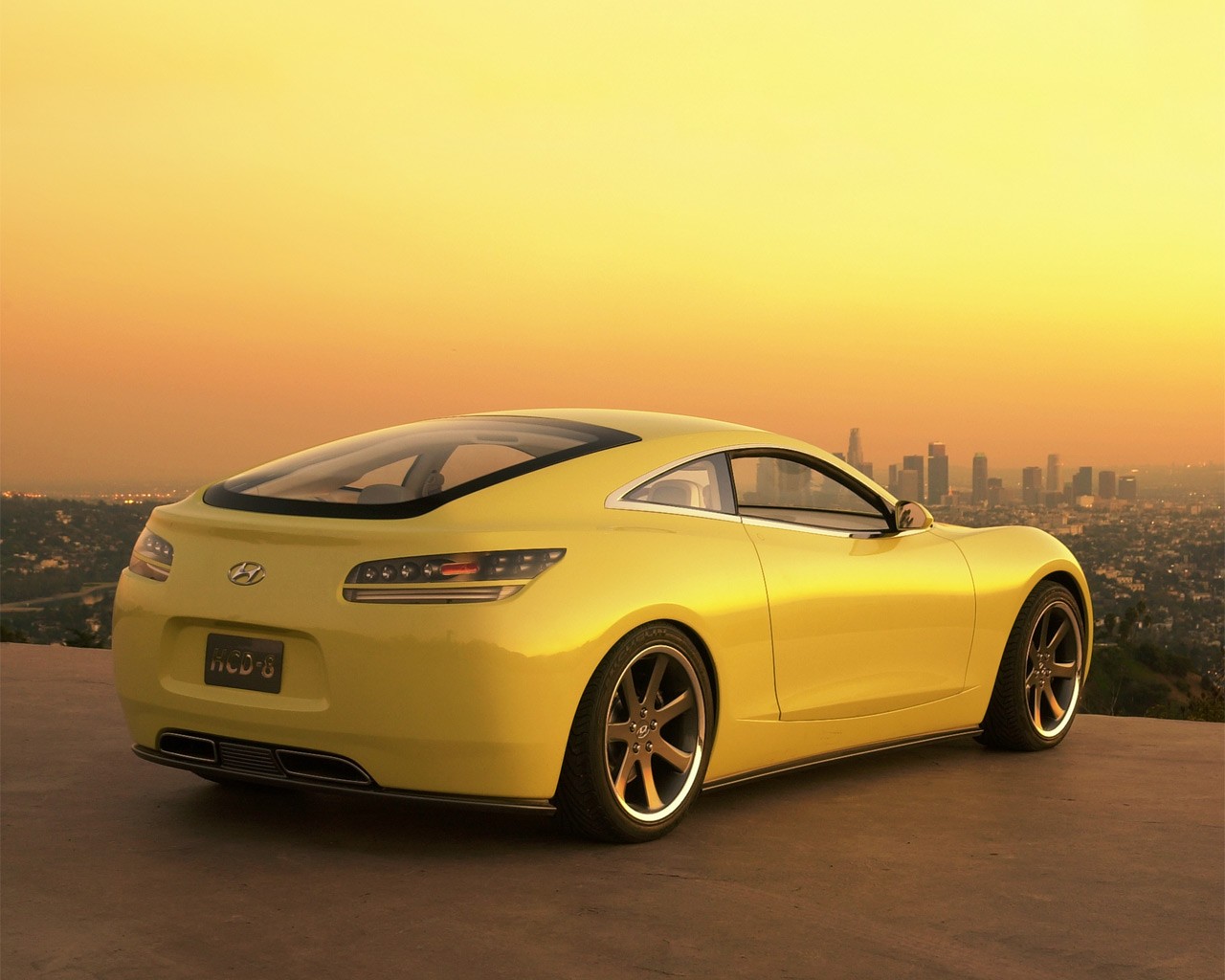Gelber Hyundai Sportwagen im Hintergrund der Stadt