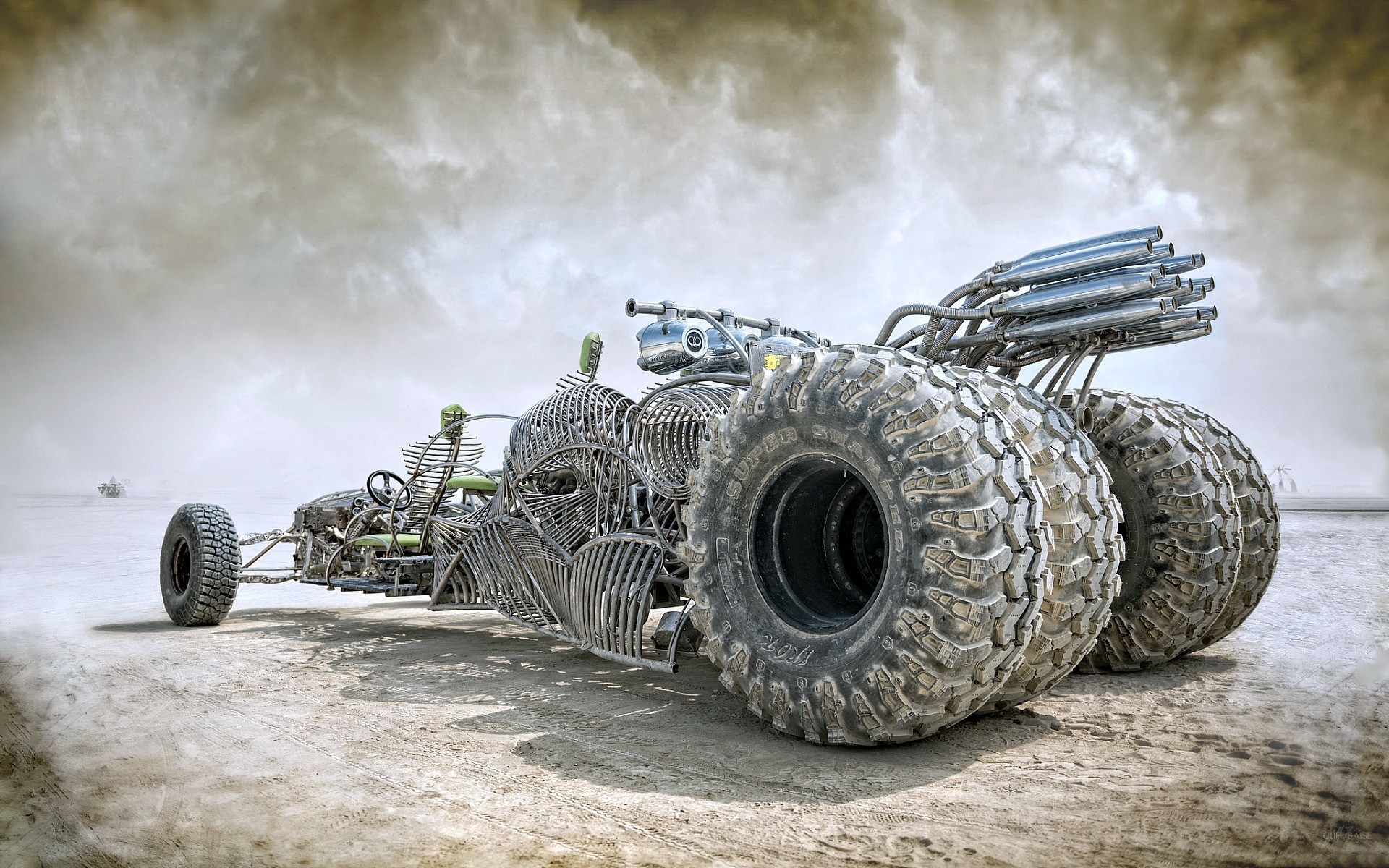 Weißer buggy im sand der rallye 2014 dakar mit grünen rädernWeißer Buggy im Sand der Rallye 2014 Dakar mit grünen Rädern