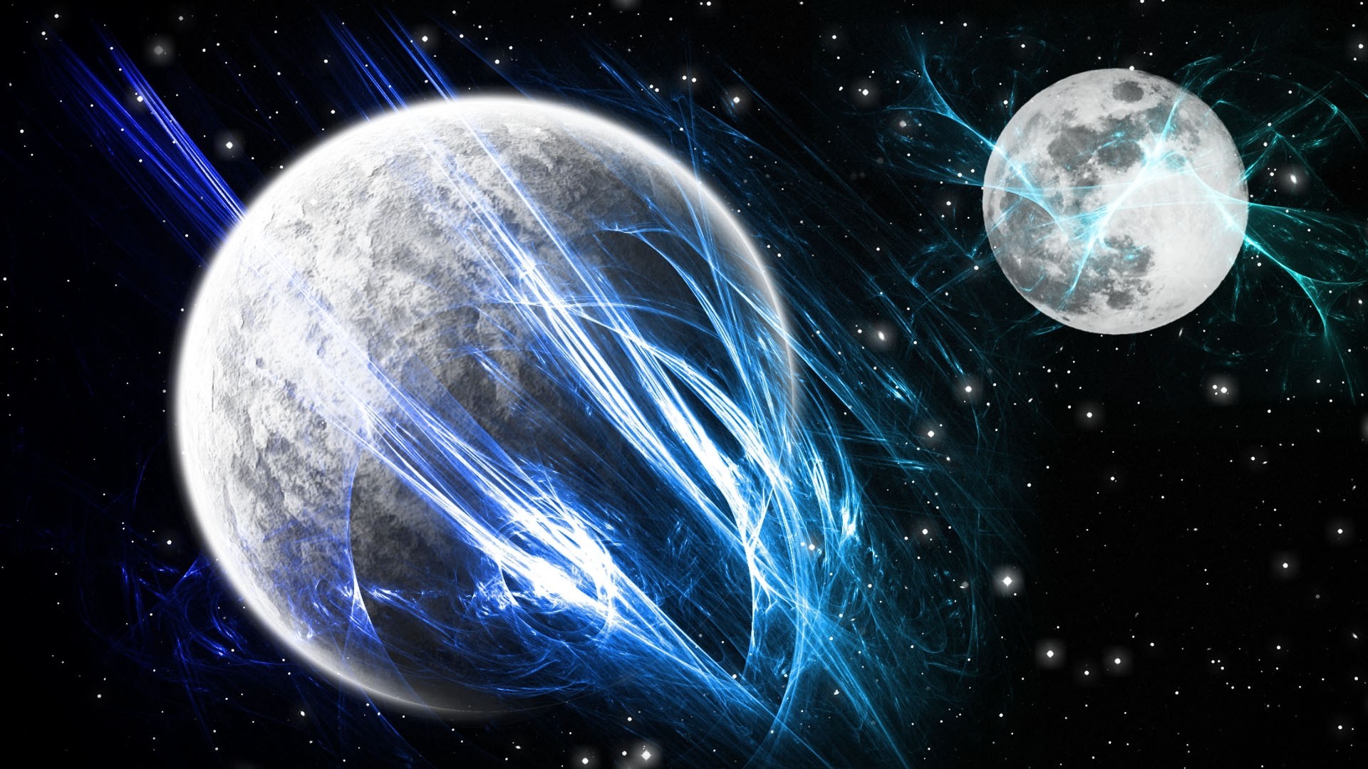 Asteroiden fliegen vor dem hintergrund von nebeln um den planeten herumAsteroiden fliegen vor dem Hintergrund von Nebeln um den Planeten herum