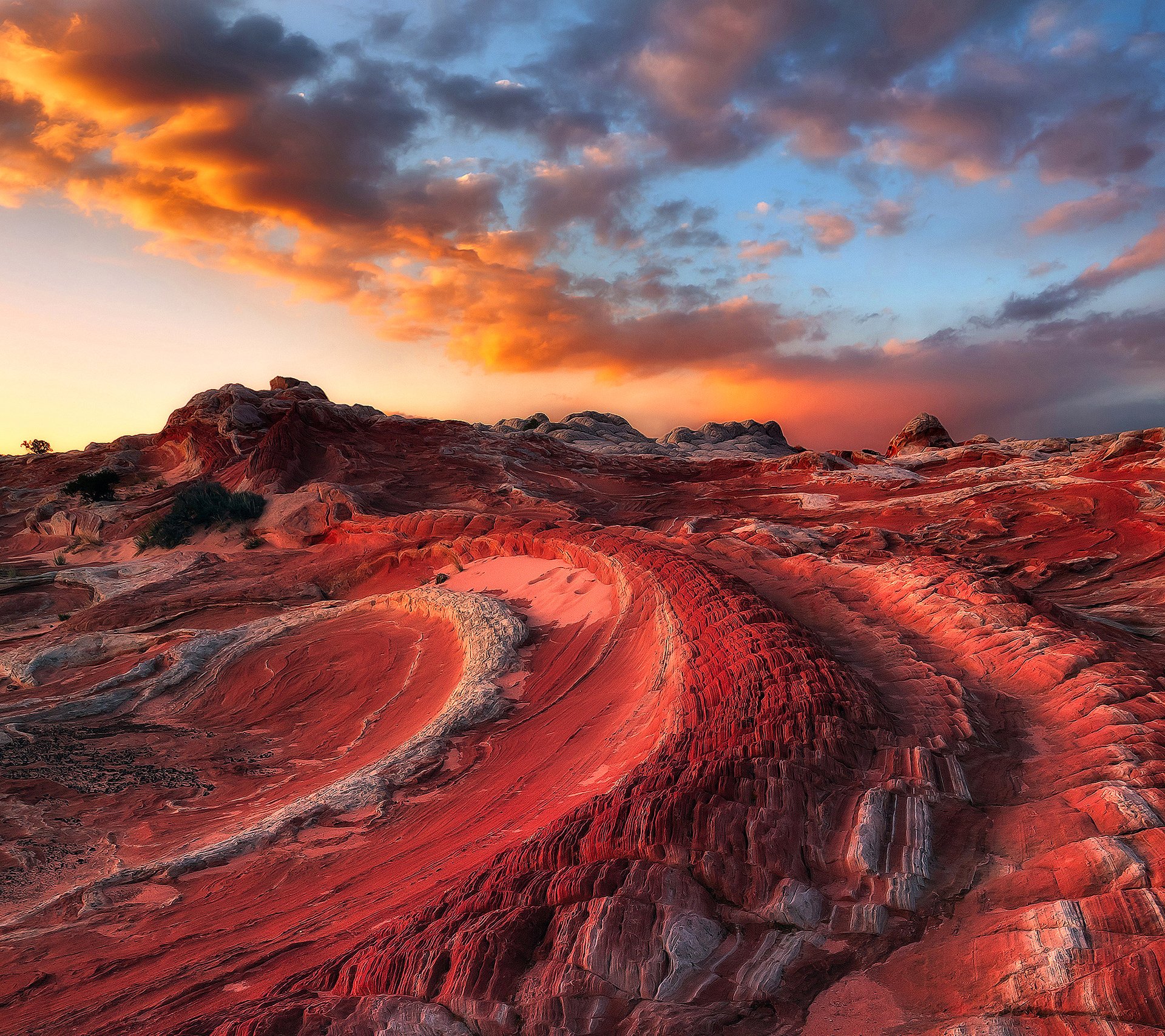 Bunte Felsen vor dem Hintergrund des Sonnenuntergangs