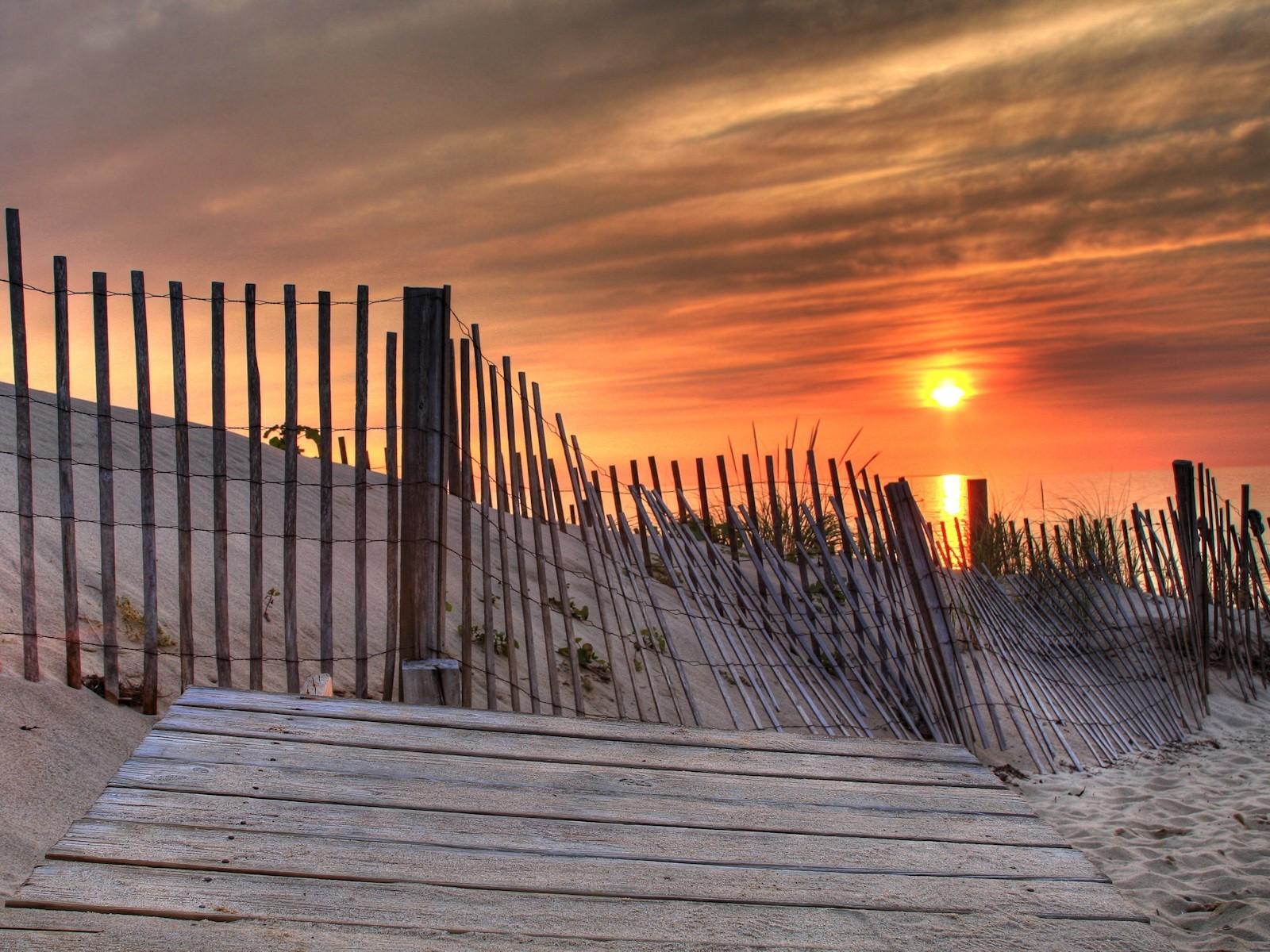 Sonnenuntergang vor dem hintergrund eines fallenden zaunsSonnenuntergang vor dem Hintergrund eines fallenden Zauns