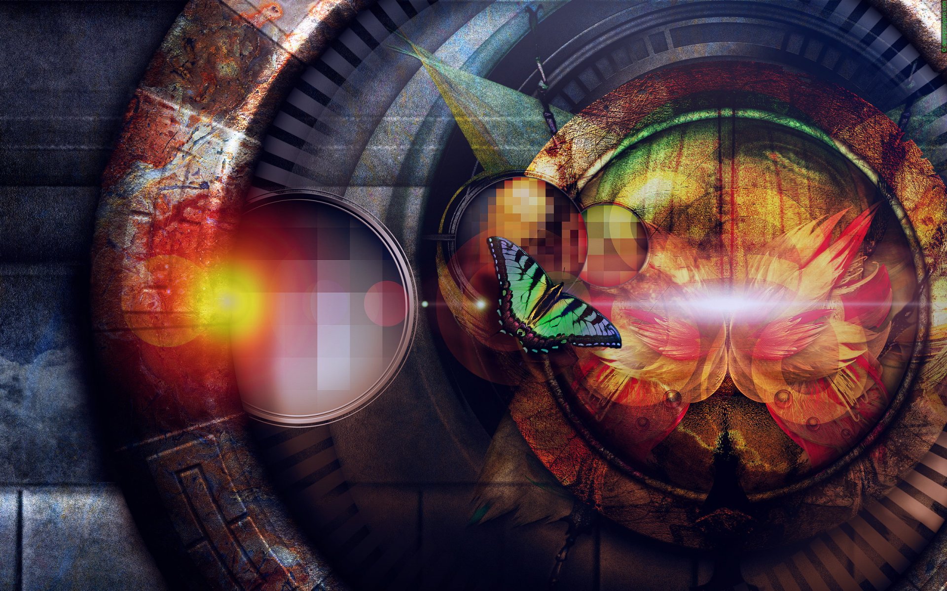 Fensterlogo im Kreis auf dunklem Hintergrund