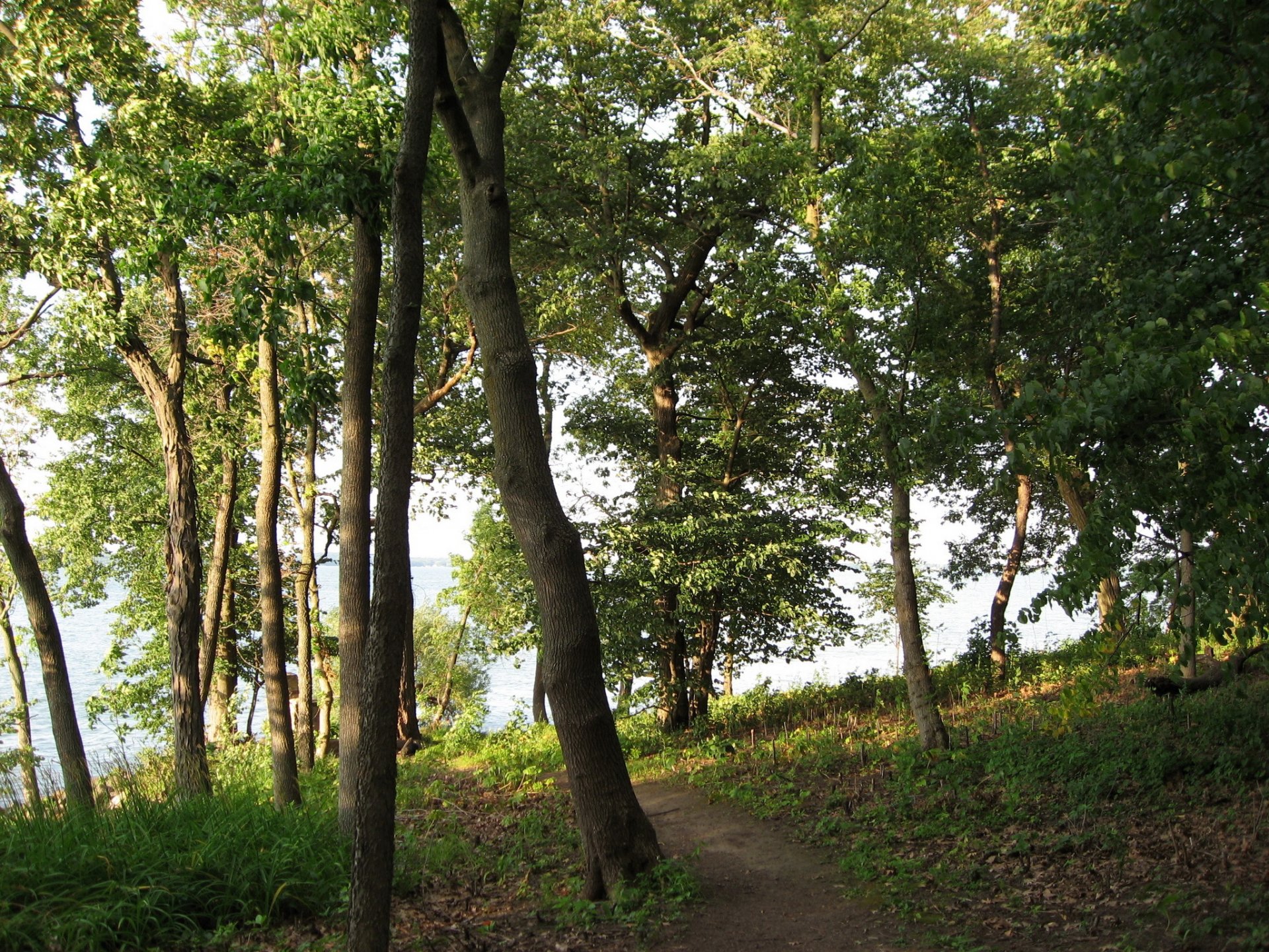 Wanderweg im Naturschutzgebiet mit verschiedenen Bäumen