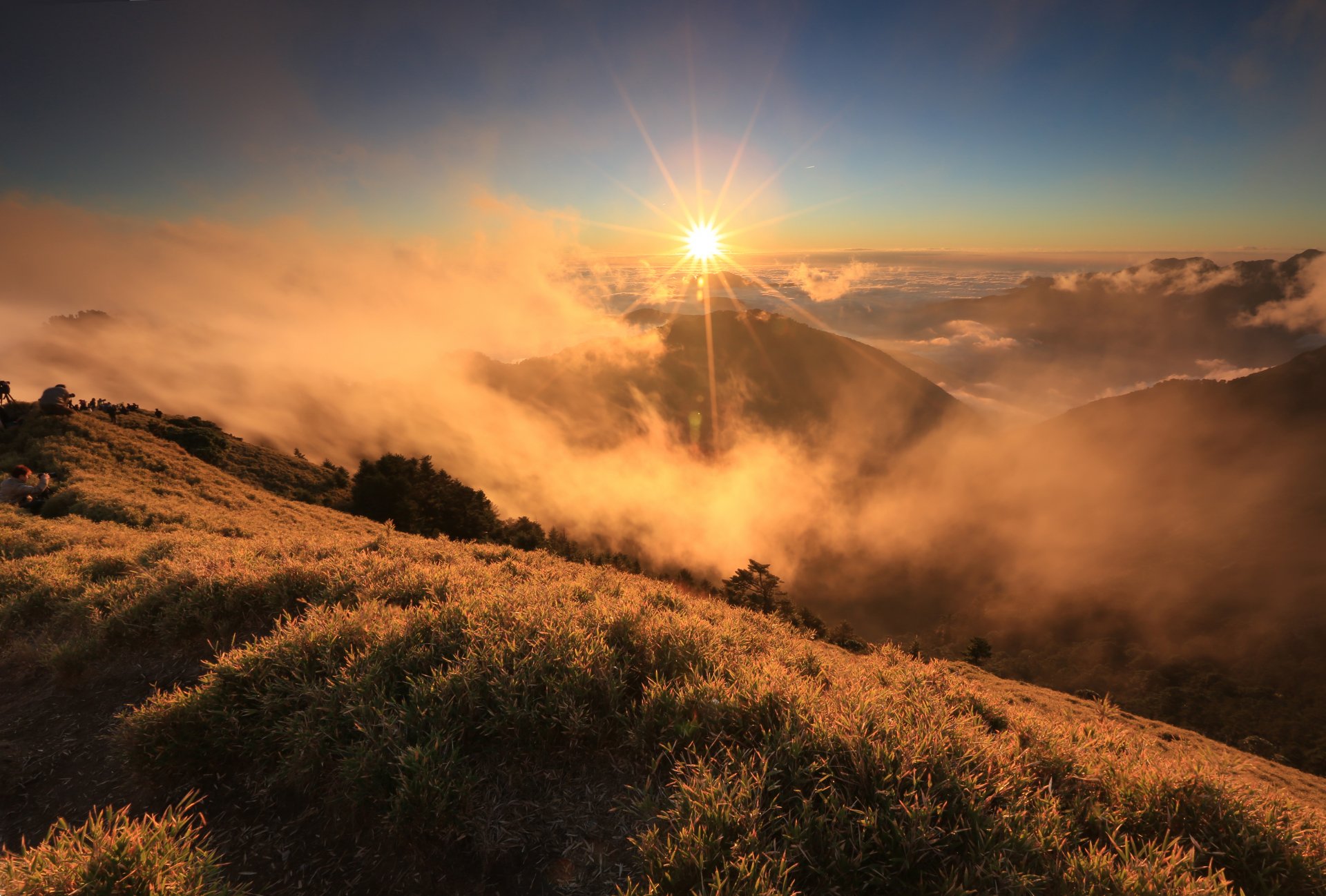 Morgennebel in den bergen vor dem hintergrund der aufstehenden sonneMorgennebel in den Bergen vor dem Hintergrund der aufstehenden Sonne