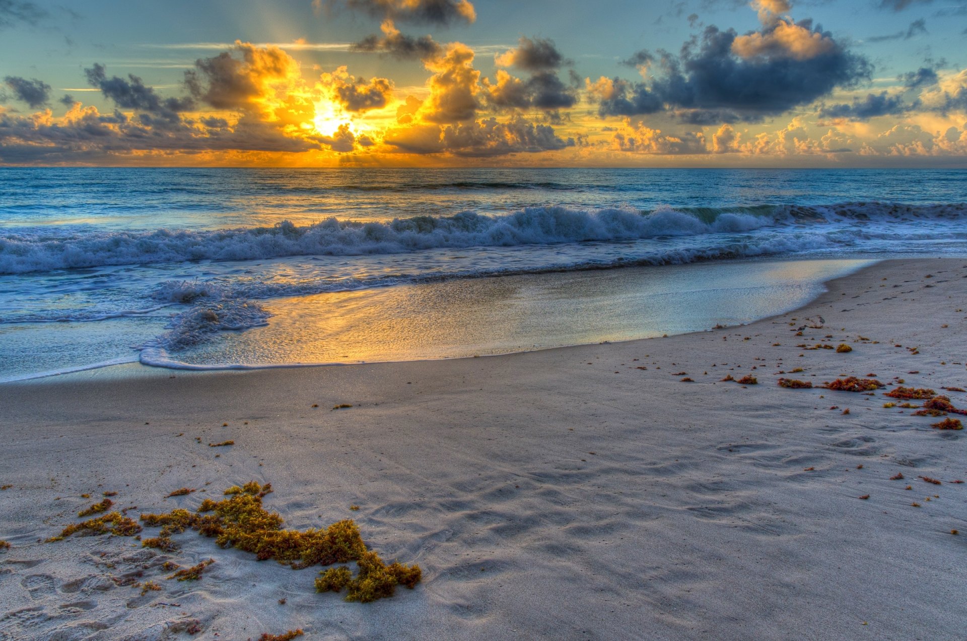 Die wellen des ozeans, die den sandstrand betretenDie Wellen des Ozeans, die den Sandstrand betreten