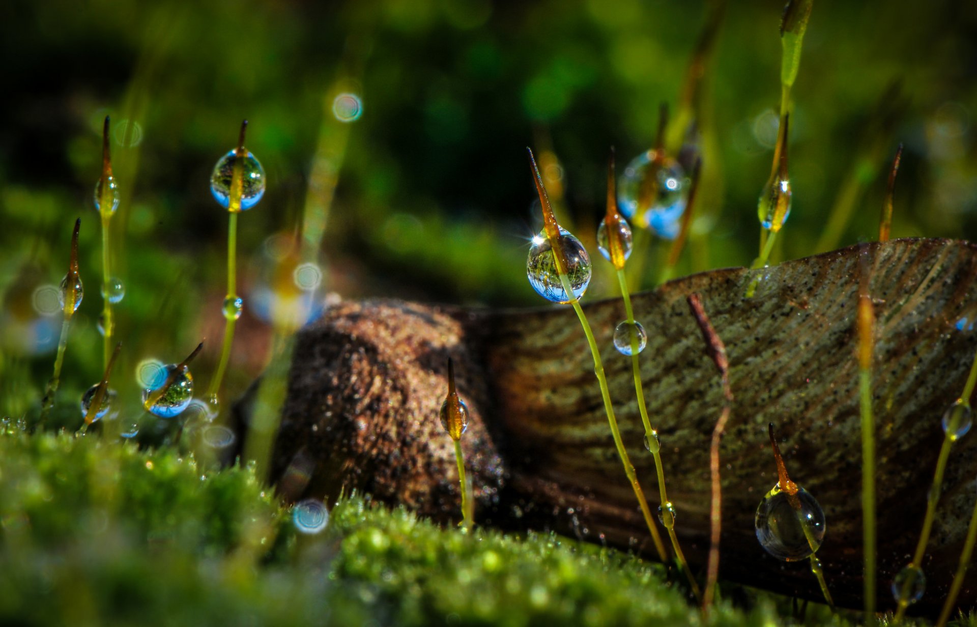 Makro mit einem tropfen wasser auf einem grünen blattMakro mit einem Tropfen Wasser auf einem grünen Blatt