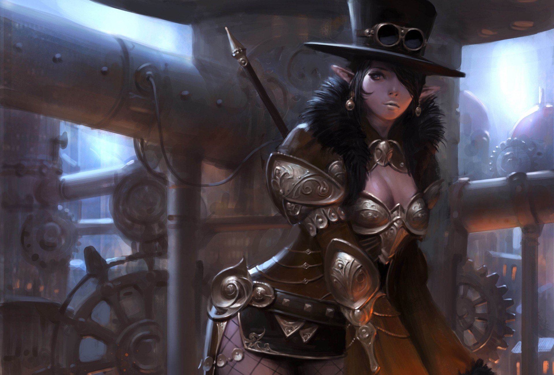Computerelfe trägt einen Hut mit Brille