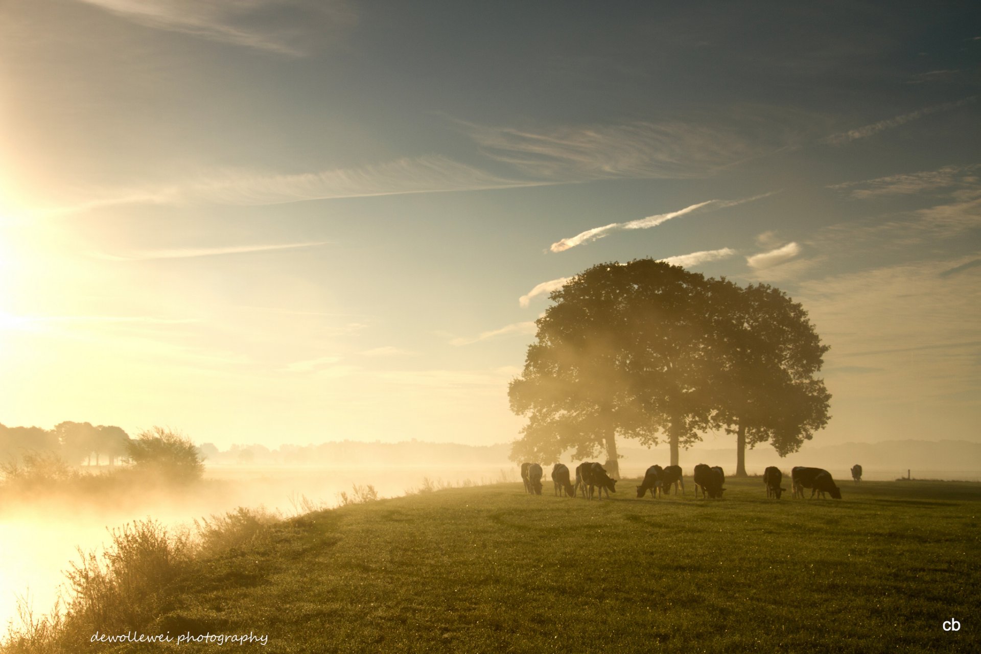 Eine Insel mit einer Weide inmitten eines großen Sees
