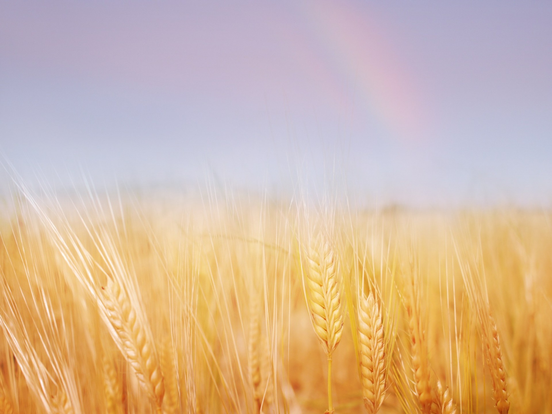 Weizen wird in der Sonne auf dem Feld gehämmert