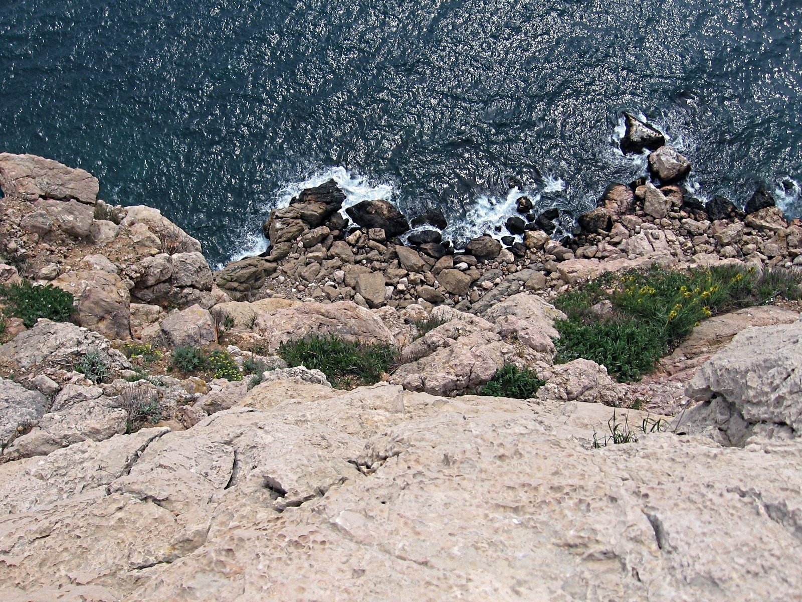 Die Wellen, die von der Sonne reflektiert werden, schlagen gegen die Steine