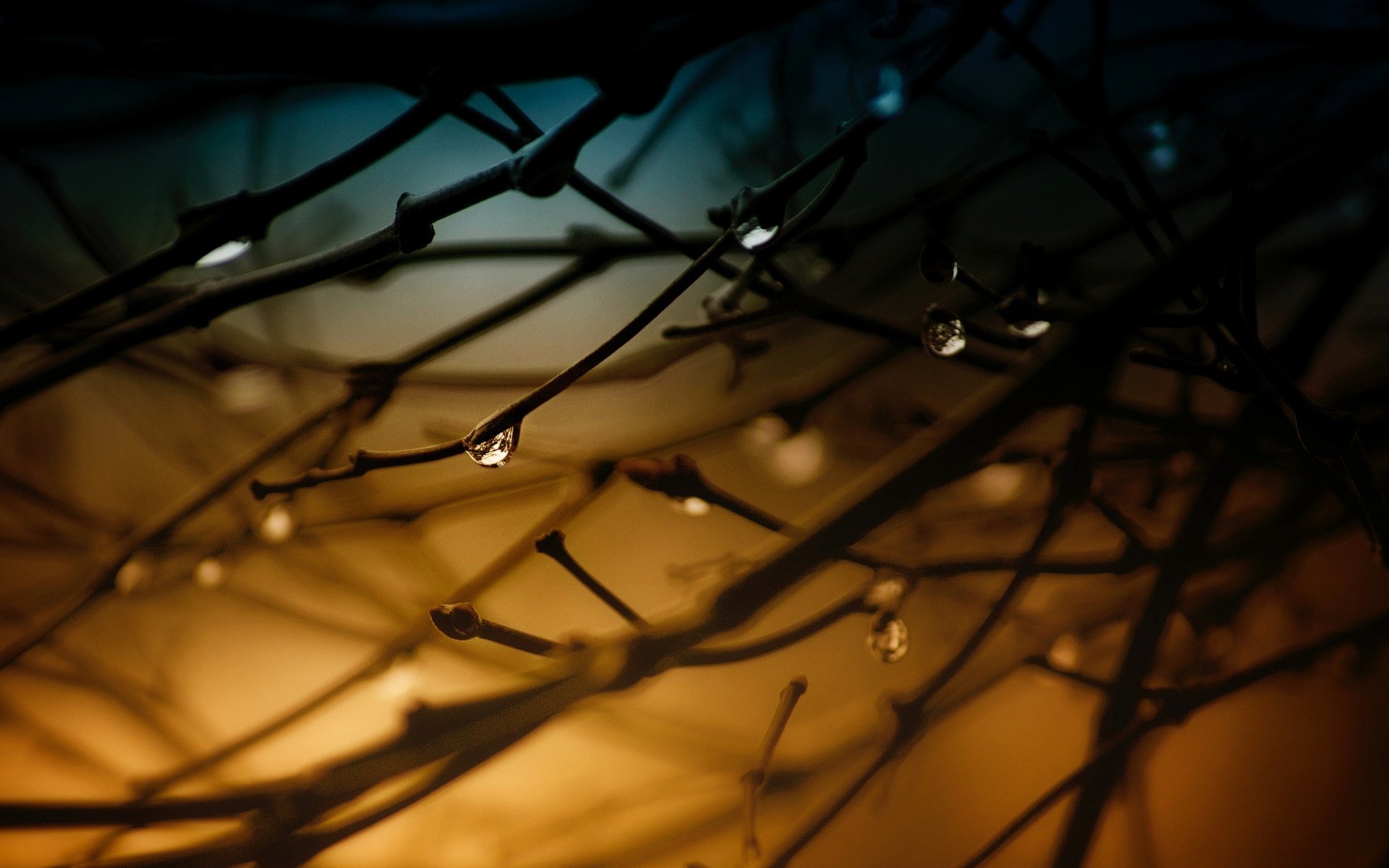 Tropfen auf den Ästen eines Baumes Makroaufnahmen