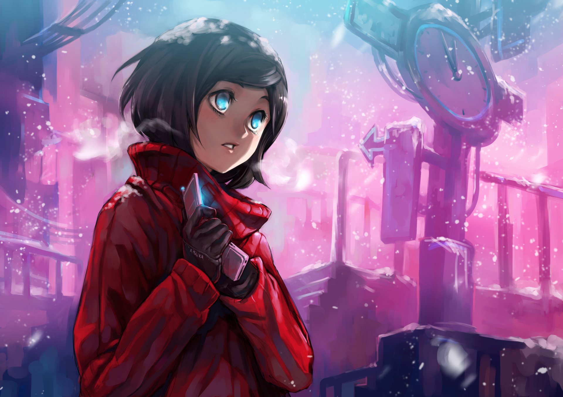Der Hund sitzt im Winter in der Nähe der Veranda