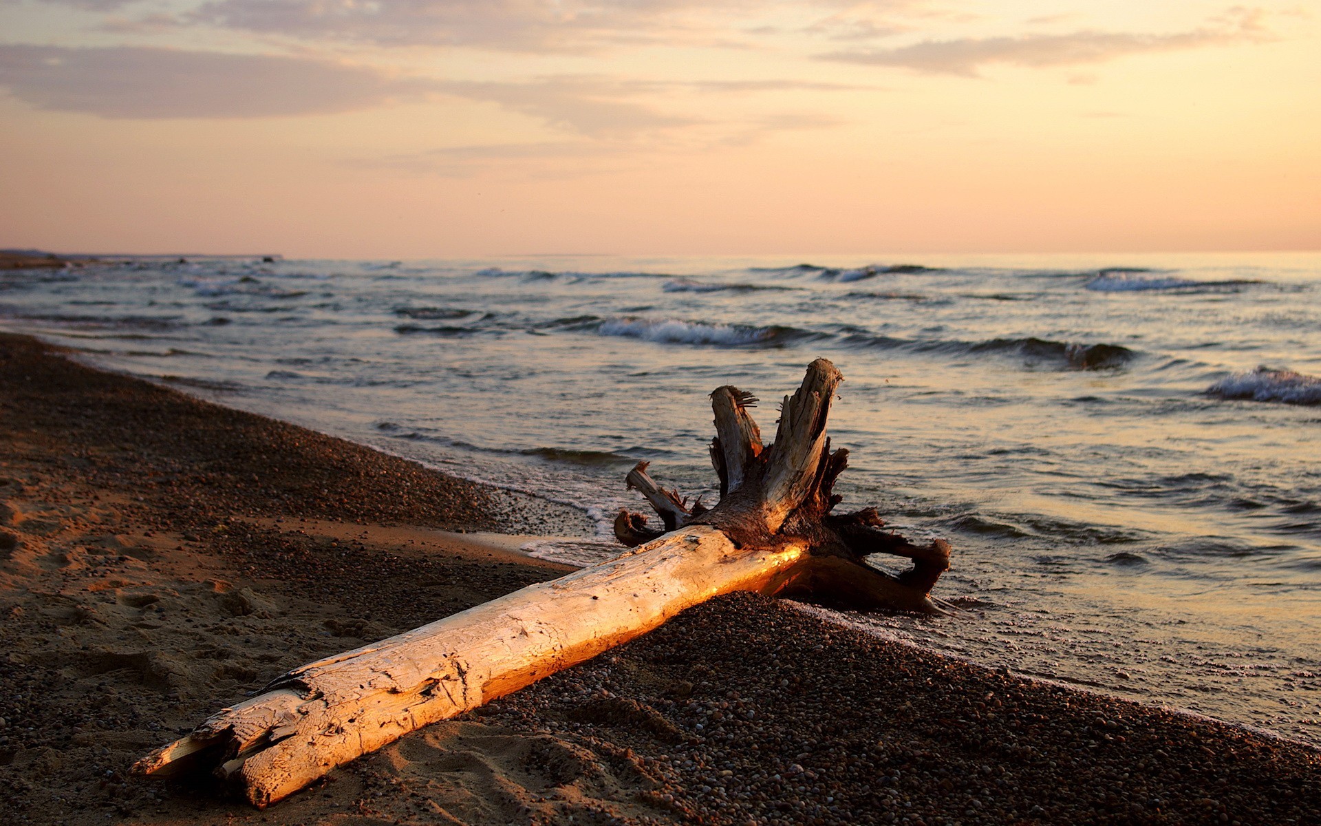 Treibholz am ufer des flusses des sonnenuntergangsTreibholz am Ufer des Flusses des Sonnenuntergangs