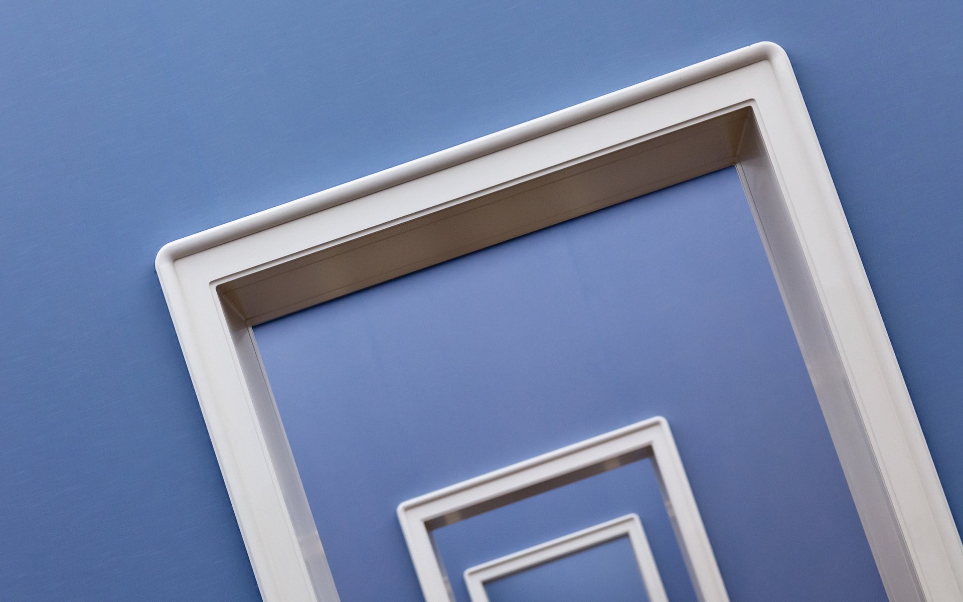 Geometrische quadratische abstraktion in blau und weißGeometrische quadratische Abstraktion in Blau und Weiß