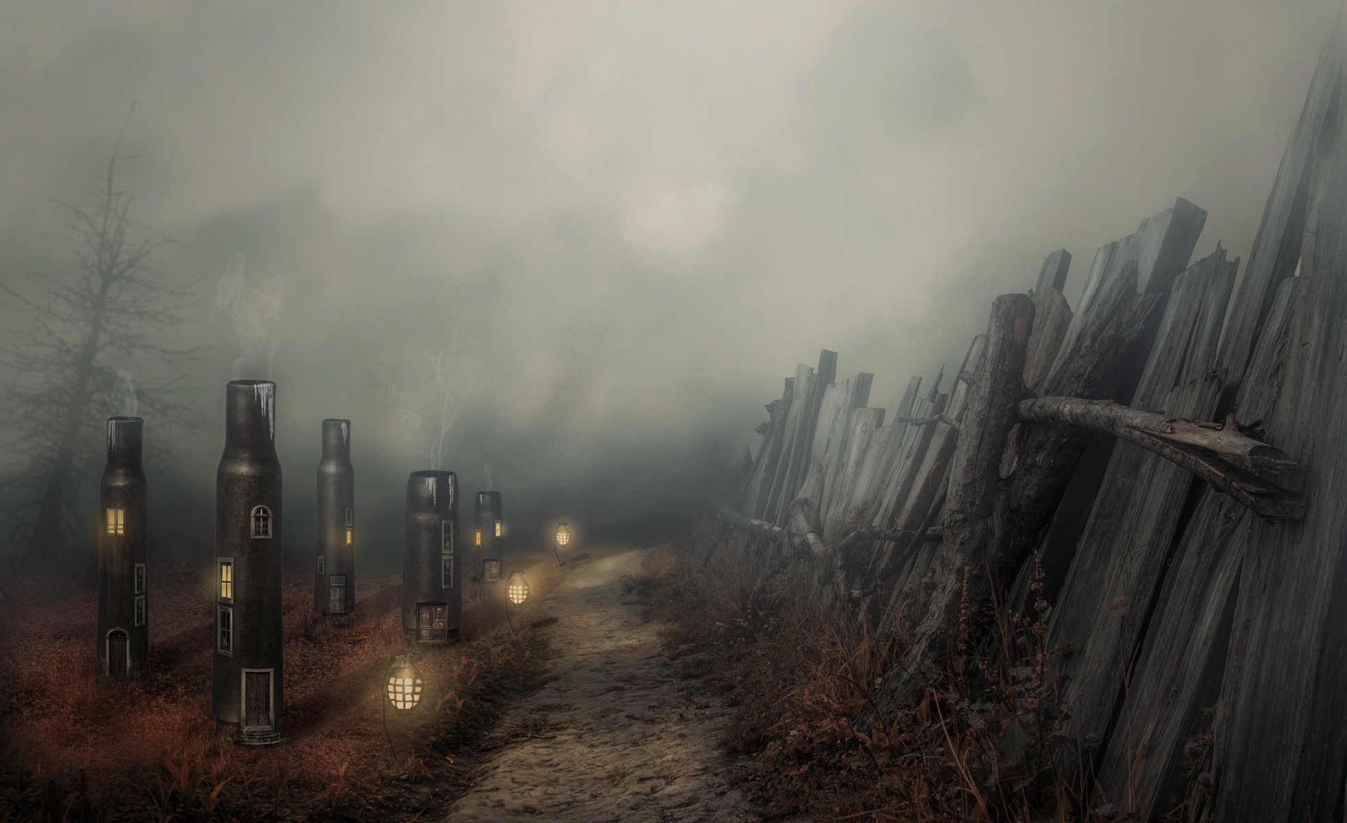 Patronenhülsen in einer verlassenen Stadt auf dem Weg hinter einem Zaun
