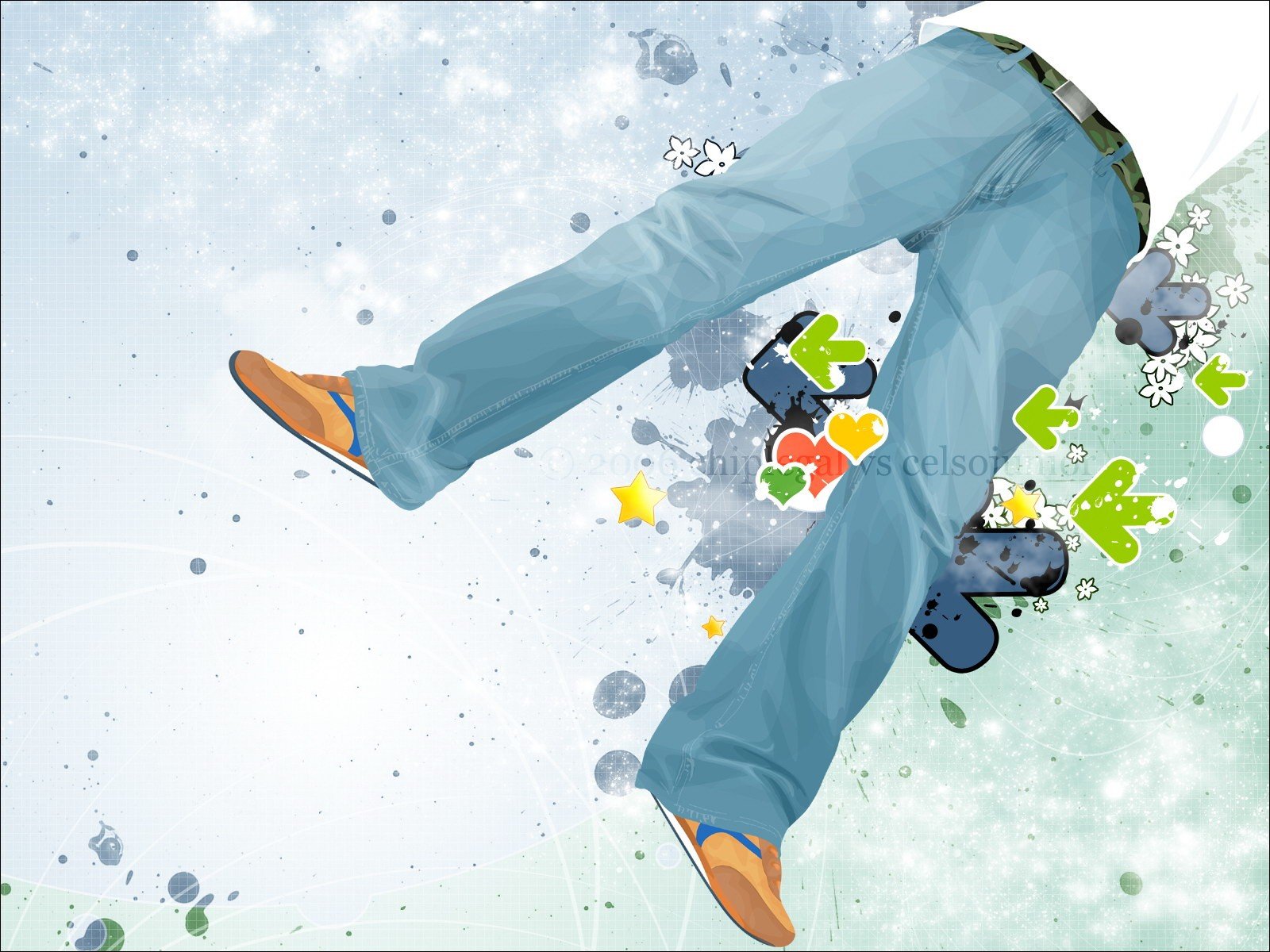 Mann mit blauer Jeans liegt mit Pfeilen und Vektoren