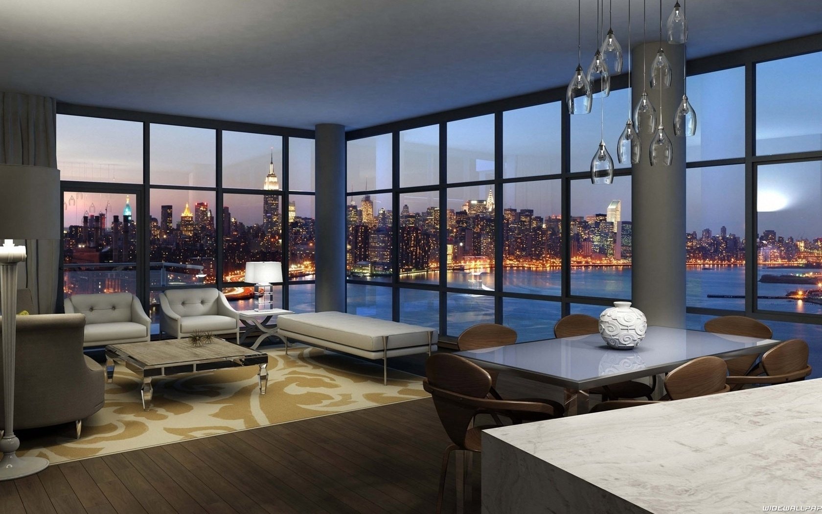 Weißes zimmer mit schwarzen und weißen möbeln und weißem mechanismusWeißes Zimmer mit schwarzen und weißen Möbeln und weißem Mechanismus