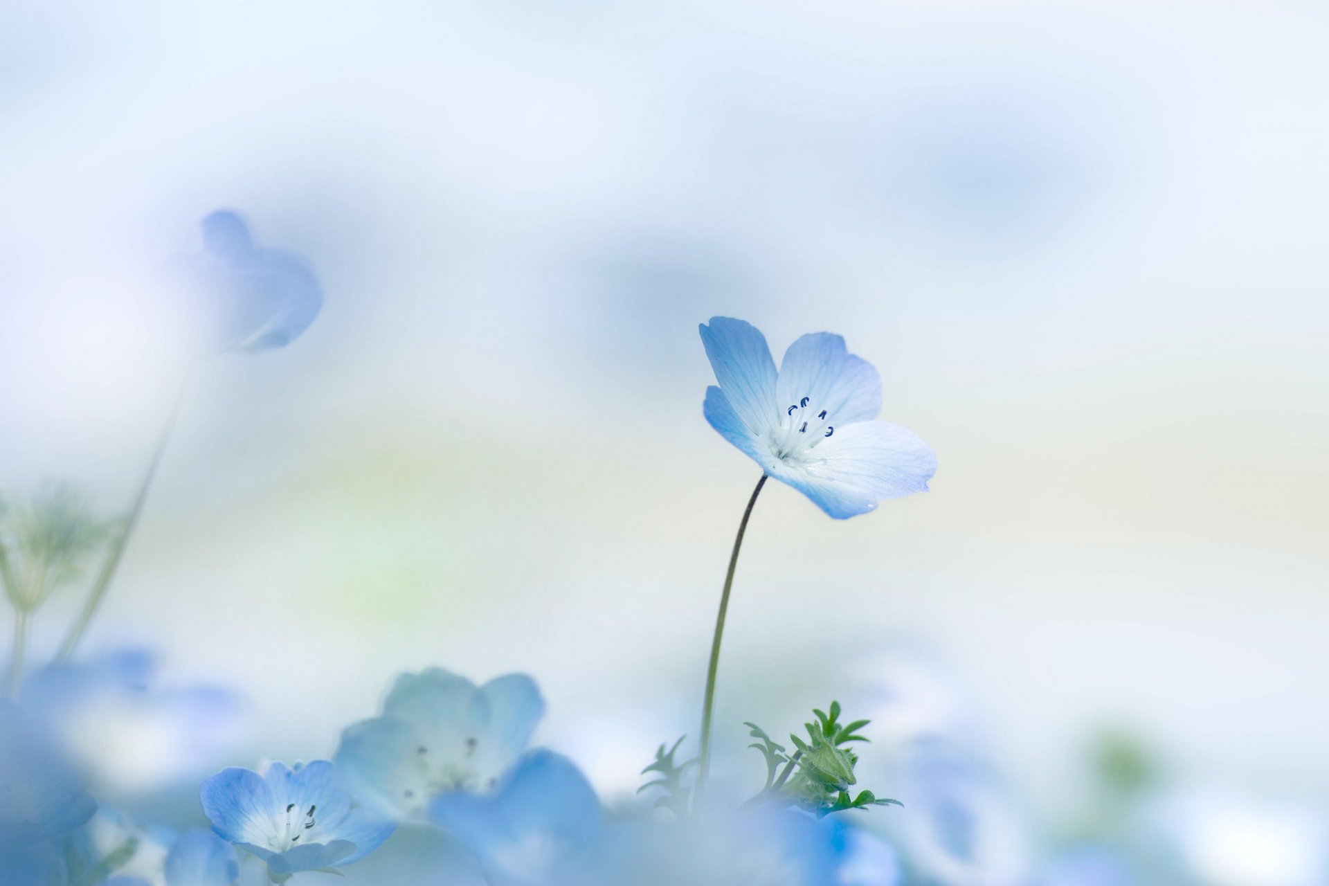 Blaue Blumen auf verschwommenem Hintergrund
